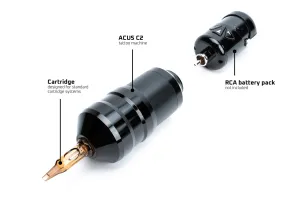ACUS C2 е висококачествен ротационен апарат за татуиране, проектиран с акцент върху производителността, компактността, ергономичността и функционалността. Благодарение на възможността за промяна на хода и универсалния RCA конектор, можете да го свържете към всяка RCA батерия или кабел, което го прави уникална и универсална машина. Лесен е за поддръжка и е изработен от висококачествени материали. ACUS C2 е идеален за всеки, който търси надежден, гъвкав и ергономичен апарат за татуиране.