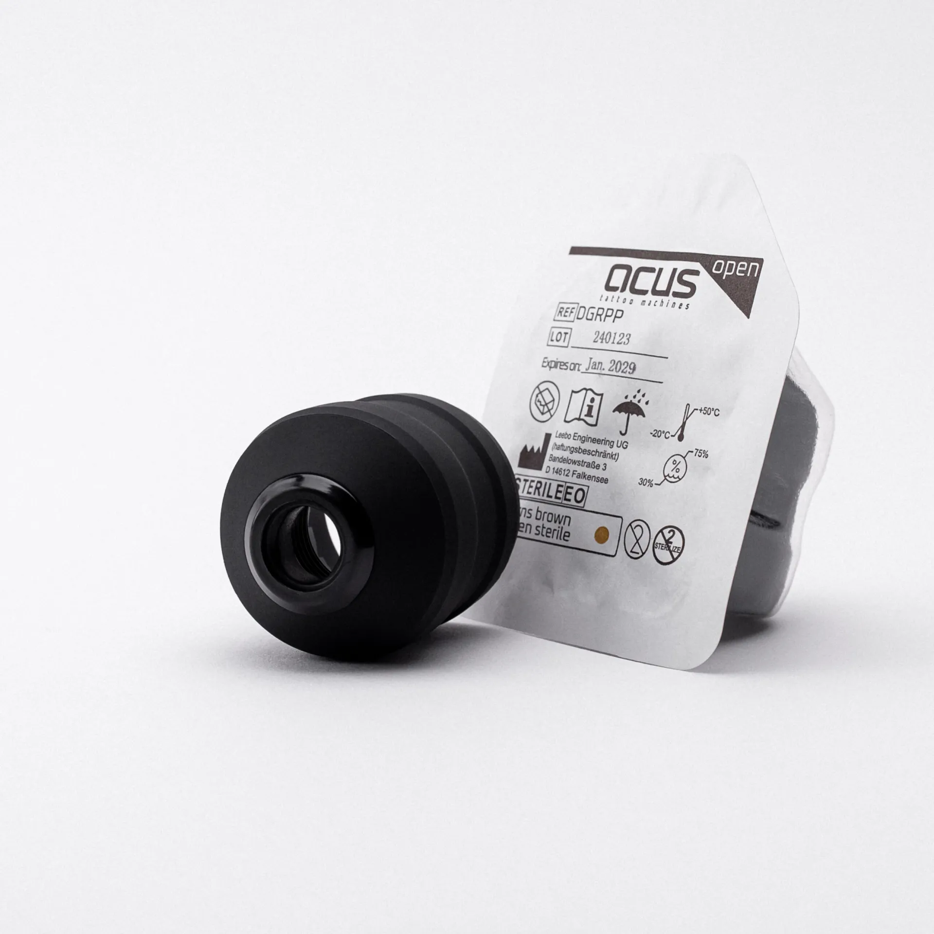 Ръкохватка за еднократна употреба с избор от диаметри 33 мм или 40 мм, изработена от пластмаса с неплъзгаща се гумена повърхност, проектирана да осигури максимален контрол, стабилност и комфорт при татуиране. Подходяща е за всички машини за татуировки ACUS и е съвместим с всички картридж игли , които предлагаме.