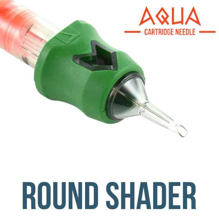 Иглите за татуировки AQUA Cartridge от AVA са проектирани да осигурят висока прецизност, надеждност, хигиена и комфорт при работа. Те имат подсилена мембрана и внимание към детайлите, осигуряващо плавен поток на мастилото. Иглите прилепват по-плътно към върховете, така че не вибрират по време на татуиране, и са силно остри, което улеснява проникването им в кожата. Материалът на иглата е изработен от немска стомана 316L, което гарантира висока твърдост и по-малко износване, като по този начин удължава живота ѝ. Дизайнът е вдъхновен от тризъбеца на супергероя - АQUAMAN. Картриджите AQUA са съвместими с всички ротационни машини тип писалки.