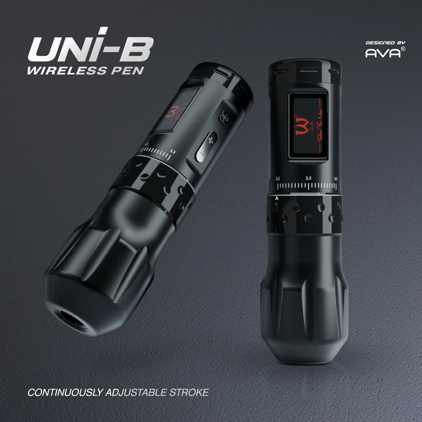 UNI-B е подобрена версия на безжичната машина UNI-A от AVA, която в сравнение с предшественика си има безстепенно регулируем ход от 2,5 до 4,5 мм чрез завъртане на пръстена. Захранването се осигурява от сменяеми литиеви батерии. С размери 128 мм * 38 мм и тегло (без батерията) от 190 г, тя все още се класифицира като къса писалка. Други предимства на UNI-B включват лесен за четене цветен дисплей, функция таймер и висока производителност дори при по-ниски напрежения.