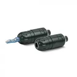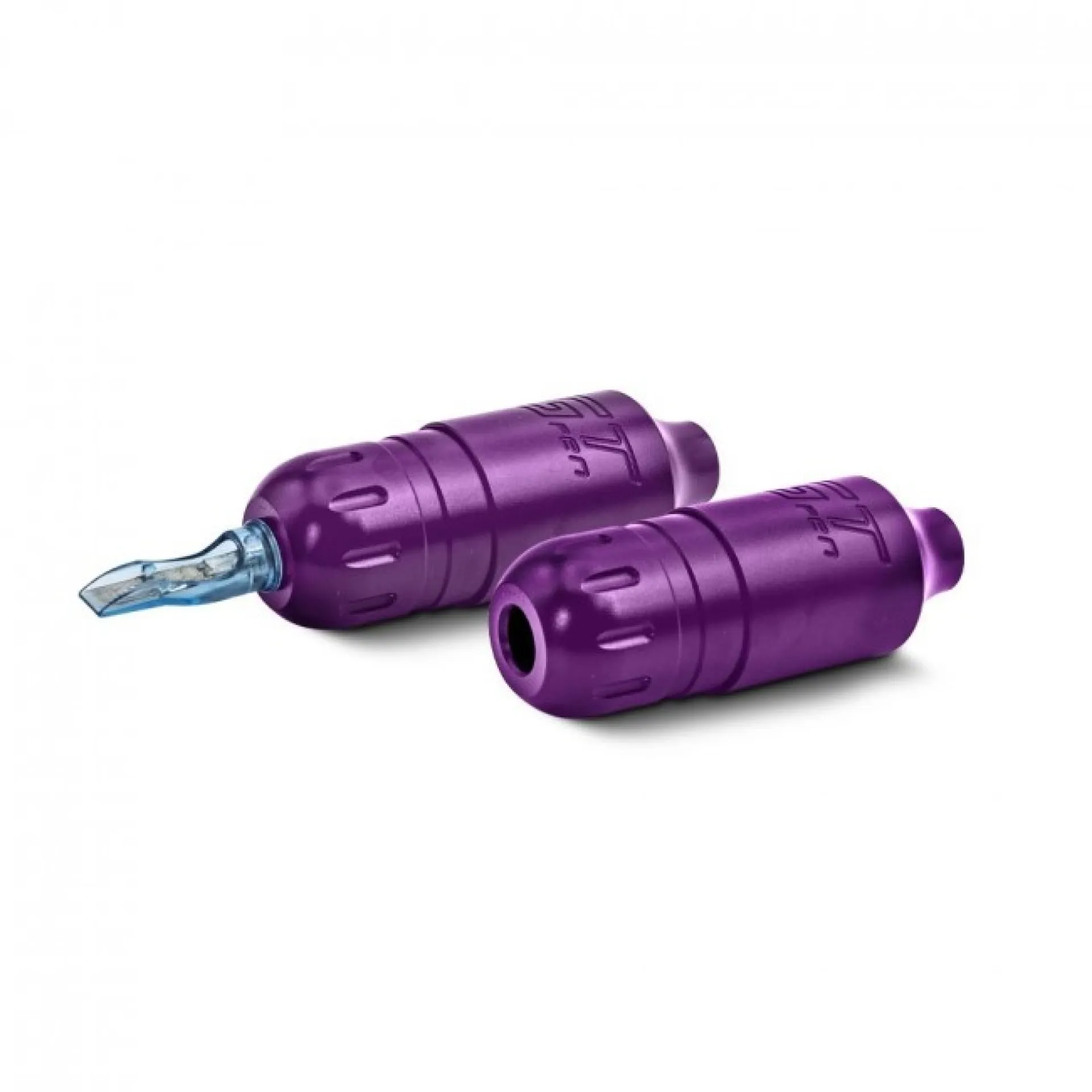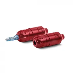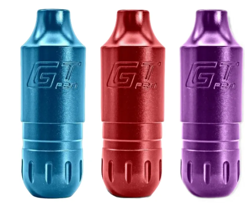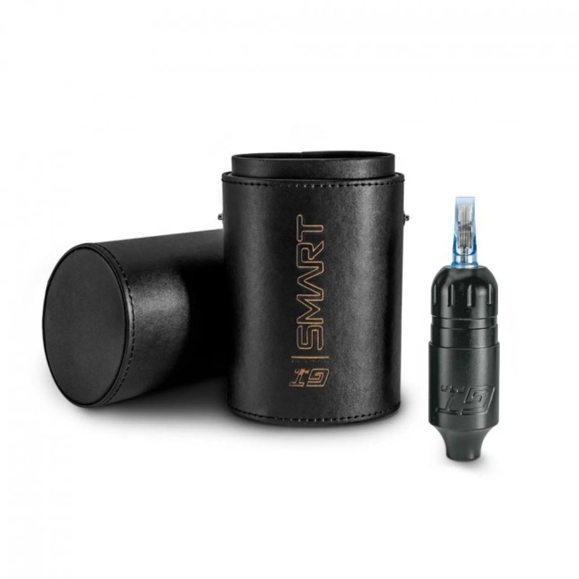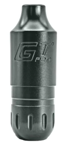 GT SMART PEN е мощна машина за татуировки, която е лека, компактна и универсална за всякакъв вид работа. Това е устройство тип PEN, но размерът му е по-скоро като ръкохватка. Дължината му е само 90 мм, така че определено ще се побере във всяка ръка. Машината се задвижва от японски мотор с височина на хода 3,5 мм. Удължението на иглата може да се коригира чрез завъртане на долния захват, докато вградената click система осигурява прецизно регулиране на удължението според нуждите. Захранването се осигурява чрез стандартен RCA конектор, а кабелът е включен в комплекта. В допълнение към кабела, ще получите и стойка за машината, резервна SLIM ръкохватка и гаранционна карта, потвърждаваща, че не е фалшификат, в луксозен кожен калъф. Производителят е включил към машината и комплект основни резервни части, като гумени уплътнения, винтове и комплект шестостенни ключове.