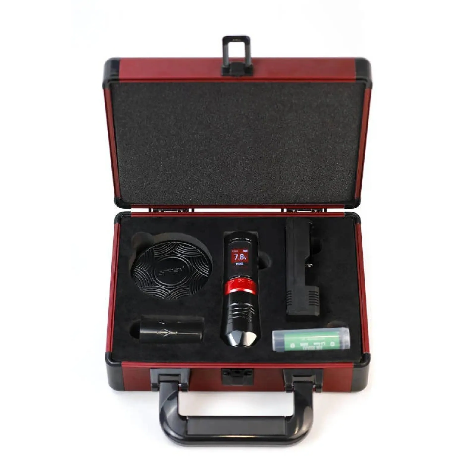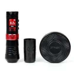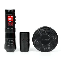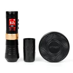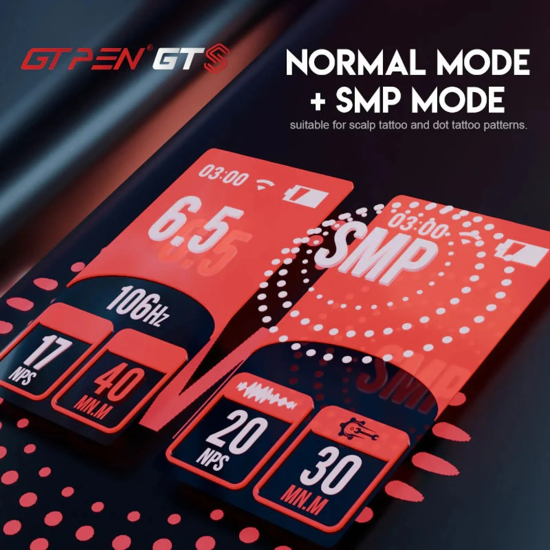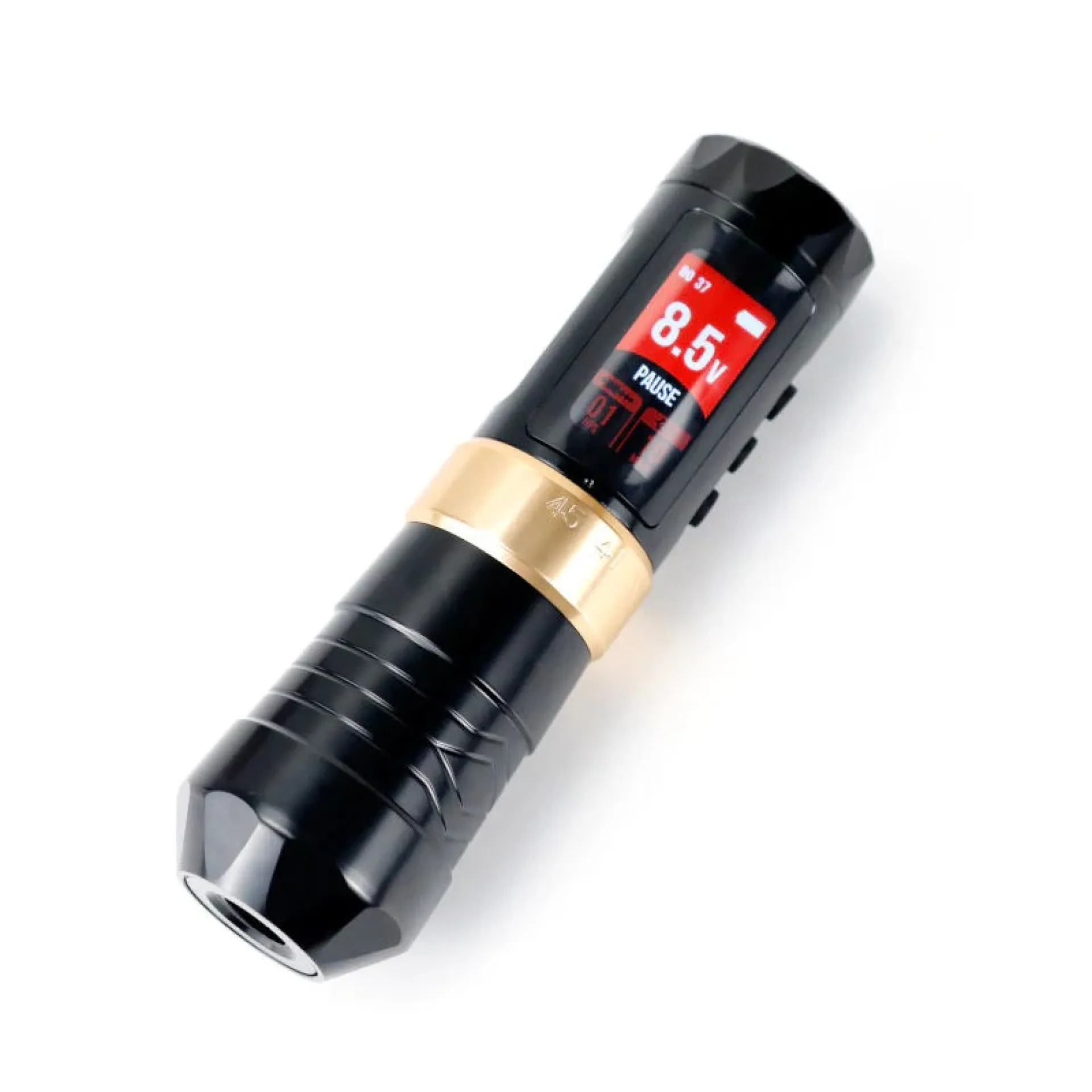Безжична машинка GTS от марката AVA на пръв поглед прилича на модела GTR, но това не са идентични устройства. Основните разлики са в техническите параметри – GTS е по-лесна за използване и е идеална за начинаещи, докато GTR предлага по-висока мощност и е по-подходяща за опитни професионалисти с по-високи изисквания. Подобно на GTR, GTS също е мултифункционална машинка, предназначена както за татуиране, така и за SMP. Разполага с регулируем ход, честота и въртящ момент, което я прави лесно адаптивна към различни техники и типове кожа. В сравнение с GTR, ходът се настройва по-просто – чрез завъртане на пръстена с разграфена скала. Устройството е оборудвано с цветен дисплей с висока резолюция, който показва текущия работен режим, напрежение, честота, въртящ момент, работно време, мощност и състояние на батерията. Управлението е интуитивно – особено подходящо за начинаещи татуисти.