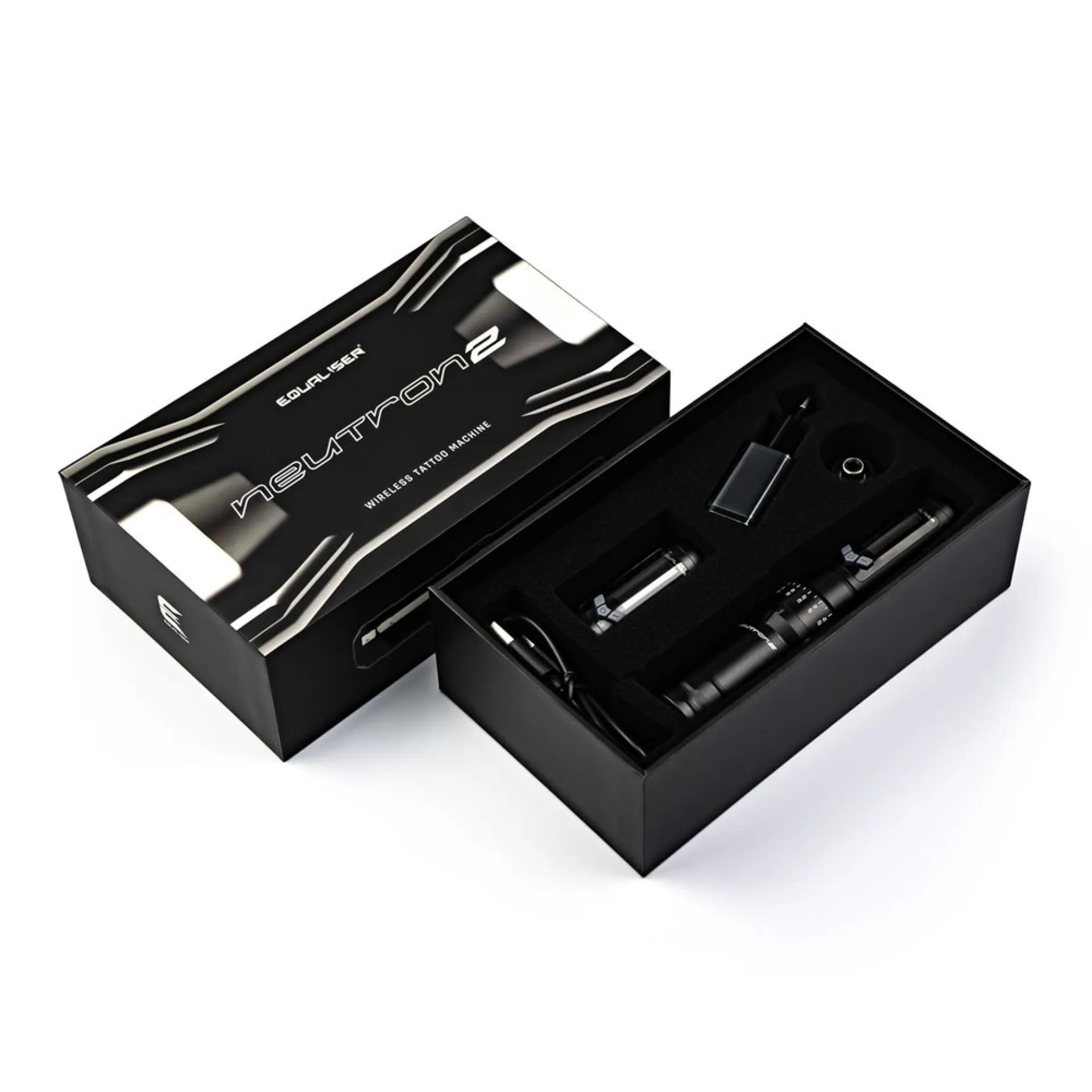 Equaliser Neutron 2 е най-новата безжична машина за татуировки от известната марка Kwadron. Този модел надгражда успеха на своя предшественик и предлага подобрения, които издигат качеството и производителността на следващо ниво. Всяка батерия осигурява до 5 часа непрекъсната работа и се зарежда напълно само за 1,5 часа. Комплектът включва две батерии за максимална мобилност, всяка от които е оборудвана с практични бутони, които правят управлението на дисплея лесно и интуитивно.