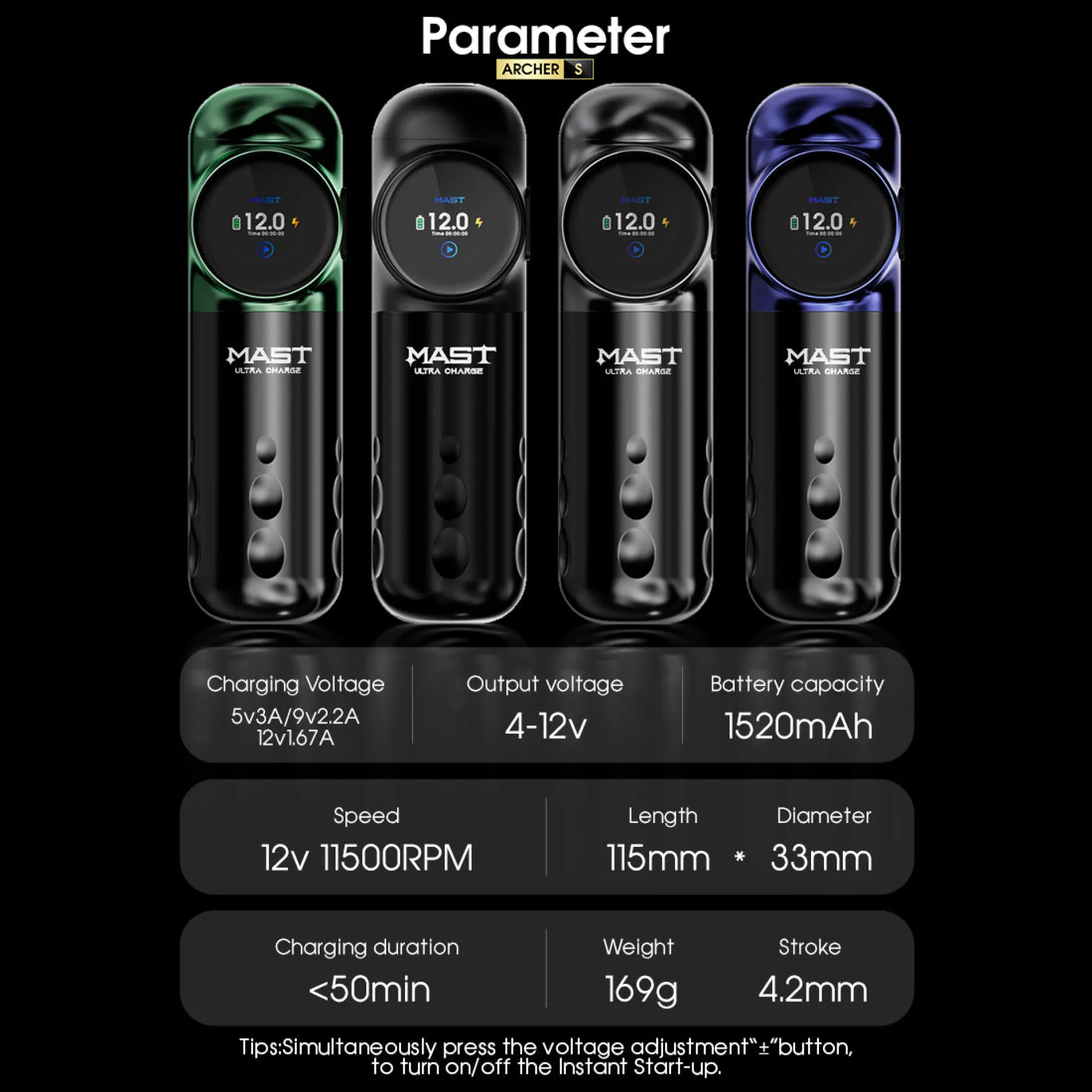 Марката MAST от DRAGONHAWK предлага на пазара ново поколение безжична машина за татуировки - MAST Archer S с ход 4.2 мм, която съчетава изключително бързо зареждане, мощен мотор и стабилна работа. Професионалният дизайн гарантира прецизност, комфорт и надеждност.