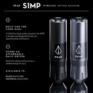Peak S1-MP е идеален избор както за начинаещи, които искат да усъвършенстват уменията си, така и за опитни татуисти, търсещи надеждна машина за татуиране. Ергономичният дизайн, наподобяващ писалка, и яркият дисплей ви дават контрол и прецизност на всяка стъпка от процеса на татуиране.