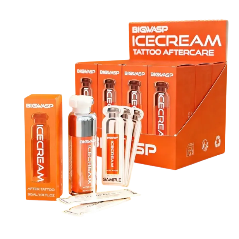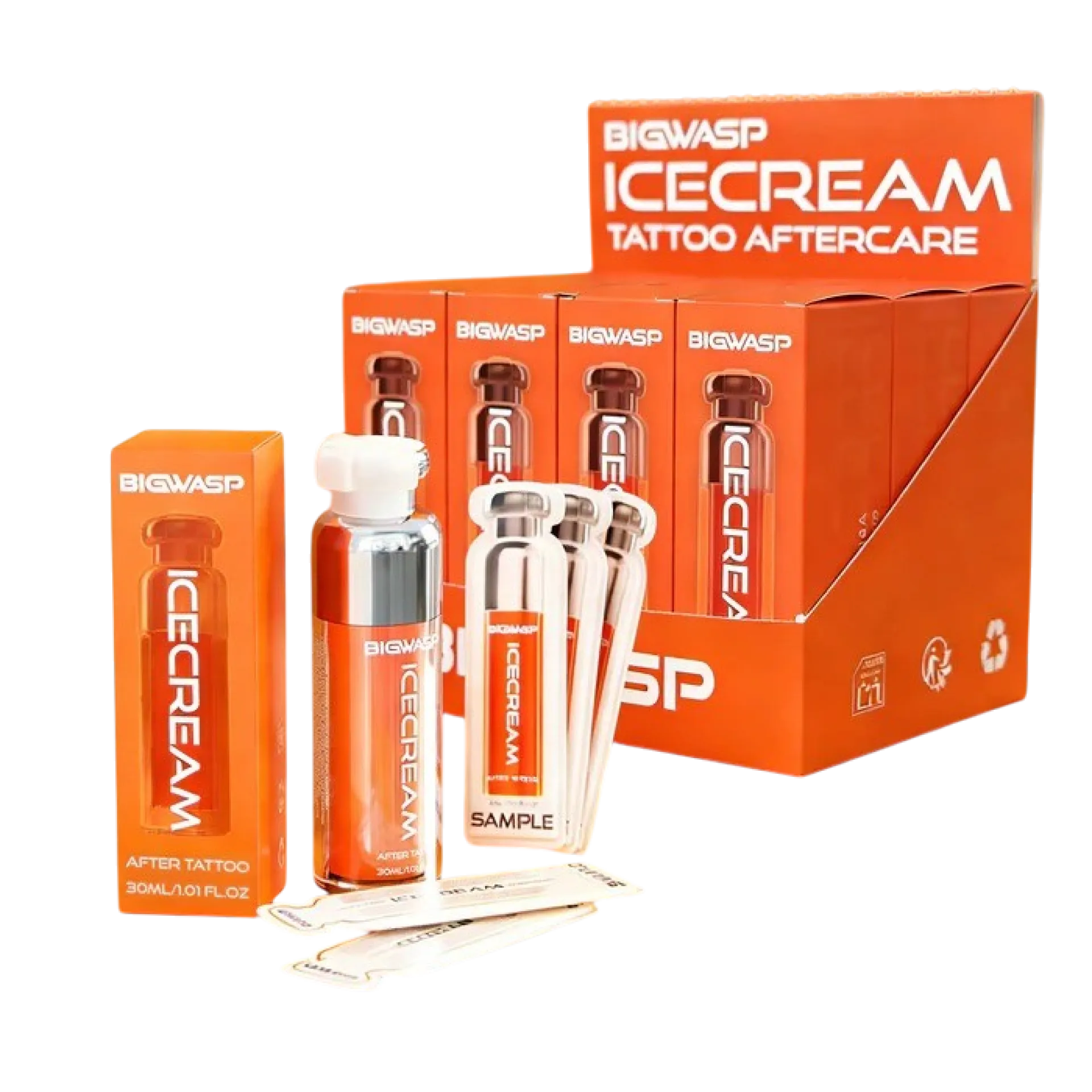 BigWasp Icecream е успокояващ крем, предназначен за грижа за свежи татуировки и възстановяване на кожата след процедурата. Помага за намаляване на зачервяването, раздразнението и усещането за опъване, като същевременно подпомага естествения процес на заздравяване и поддържа кожата хидратирана.