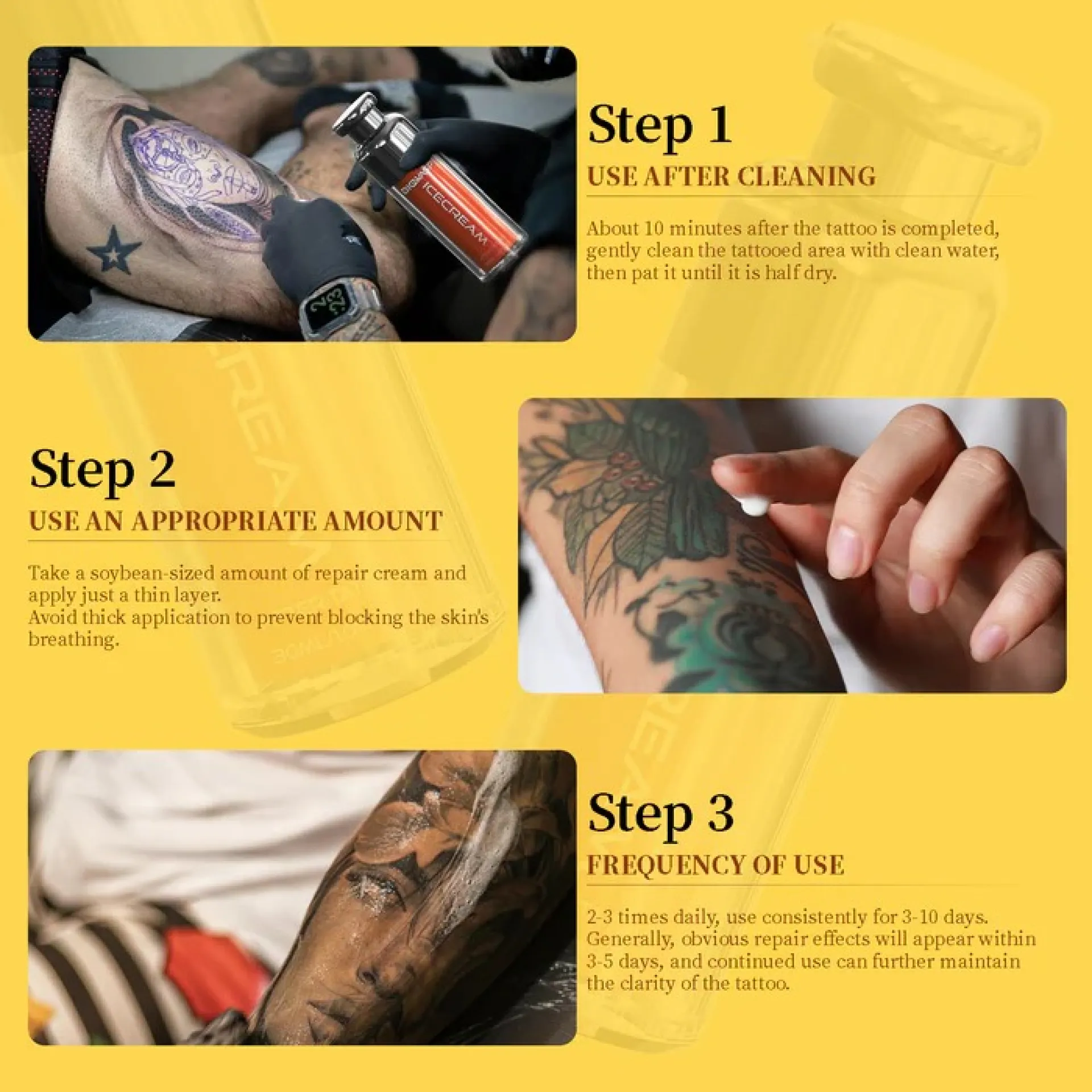 Формулата е създадена да подпомага регенерацията на кожата, хидратацията и комфорта след татуиране. Подходящ за ежедневна употреба по време на целия процес на заздравяване.
