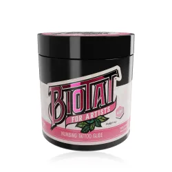 Оригинален продукт за татуировки с нотка на естествено розово. Продуктите Biotat са първите в света 100% натурални продукти, които осигуряват обезболяващ ефект без използването на химикали като лидокаин. Присъединете се към революцията в татуировките и работете без болка в комбинация с природата.
