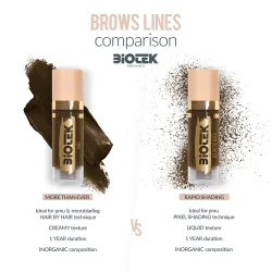 Всички нюанси са неутрални, перфектно балансирани, за да ви гарантират стабилни резултати без червеникаво или сиво оцветяване. Така че няма нужда да смесвате 2 цвята, нито да добавяте модификатори (напр. смесване на цветове). Линията Rapid Shading, подобно на линията за вежди Biotek More Than Ever, е 100% неорганична. Всички цветове BIOTEK са снабдени със специално био покритие, което защитава пигментните молекули и предотвратява всякаква промяна в цвета!