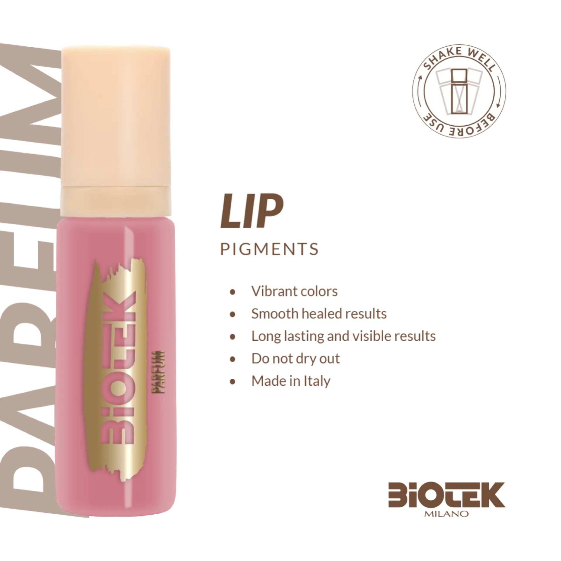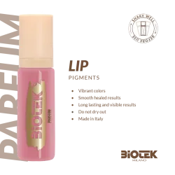 Пигментите за PMU BIOTEK Milano са с доказано качество от 1987 г. Тази италианска компания сега предлага нова линия пигменти „More Than Ever“, които напълно отговарят на най-новите разпоредби на ЕС (Tattoo REACH 2023). Новият елегантен дизайн на шишенцето с вградено капкомерче осигурява лесно и прецизно нанасяне на пигмента, като същевременно предпазва цвета и удължава неговия живот до 5 години.