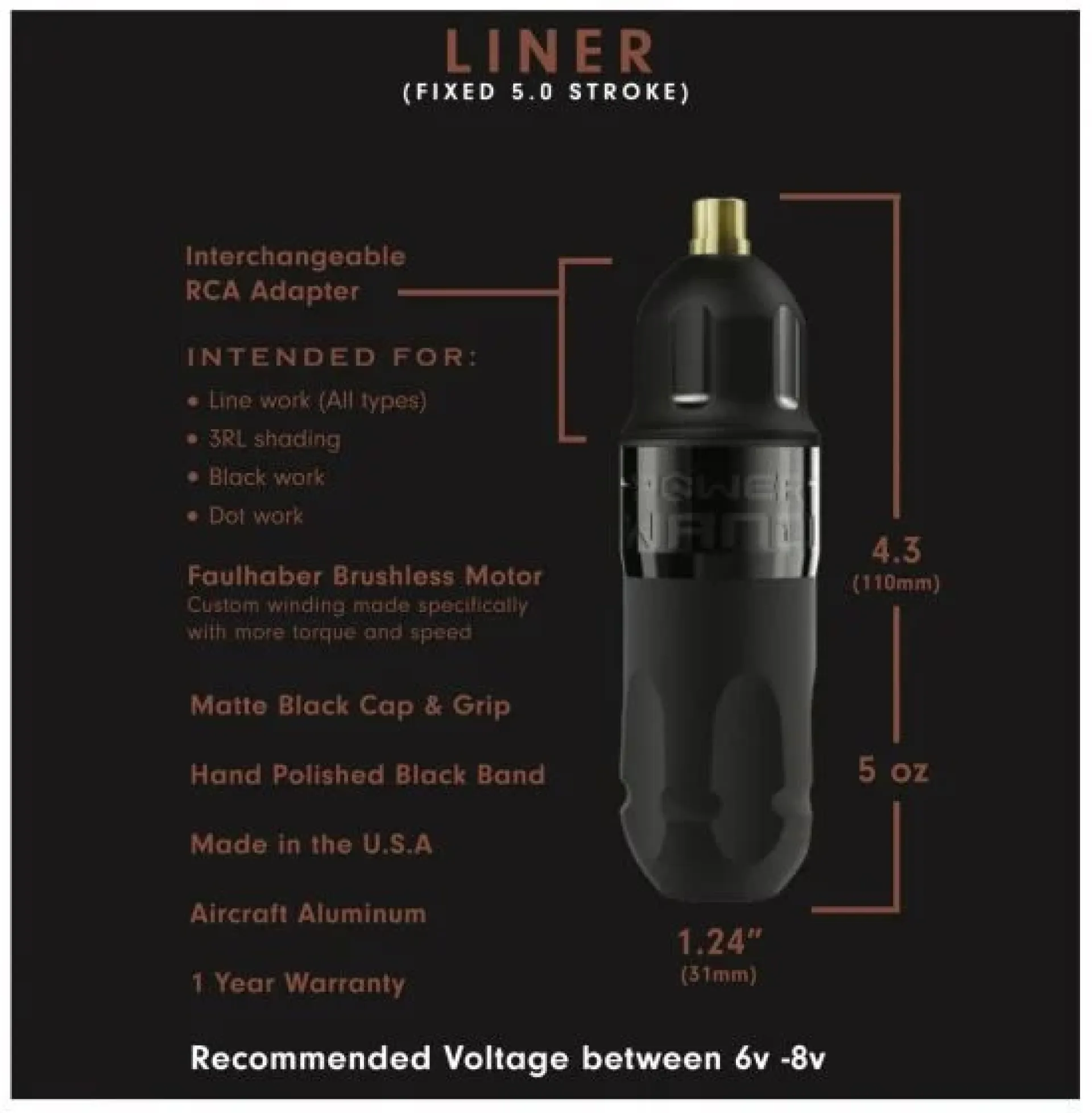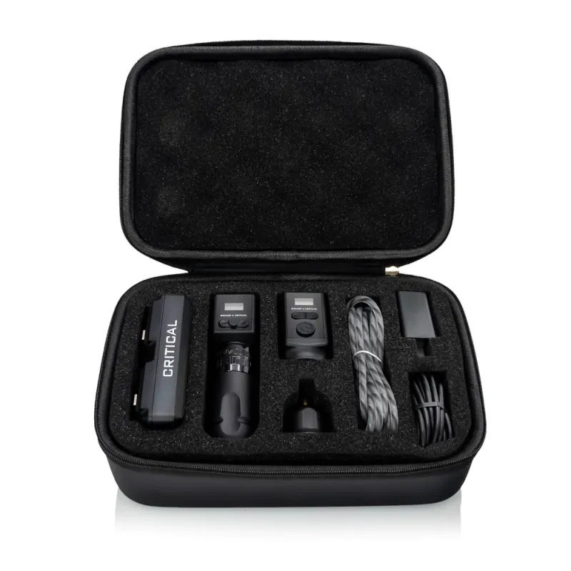 Всички технически параметри (ход на иглата/мотор/размери на ръкохватката) остават същите като при съществуващия модел. Основната разлика е магнитната задна плочка, съвместима с батерии Critical. След свързване батерията се подравнява с машинката, осигурявайки по-добър баланс, ергономичност и естетически вид в сравнение с обикновена външна батерия.