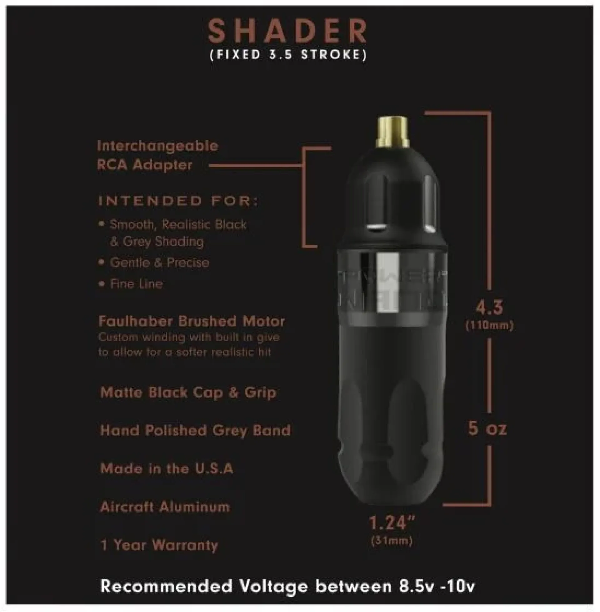 Всички технически параметри (ход на иглата/мотор/размери на ръкохватката) остават същите като при съществуващия модел. Основната разлика е магнитната задна плочка, съвместима с батерии Critical. След свързване батерията се подравнява с машинката, осигурявайки по-добър баланс, ергономичност и естетически вид в сравнение с обикновена външна батерия.