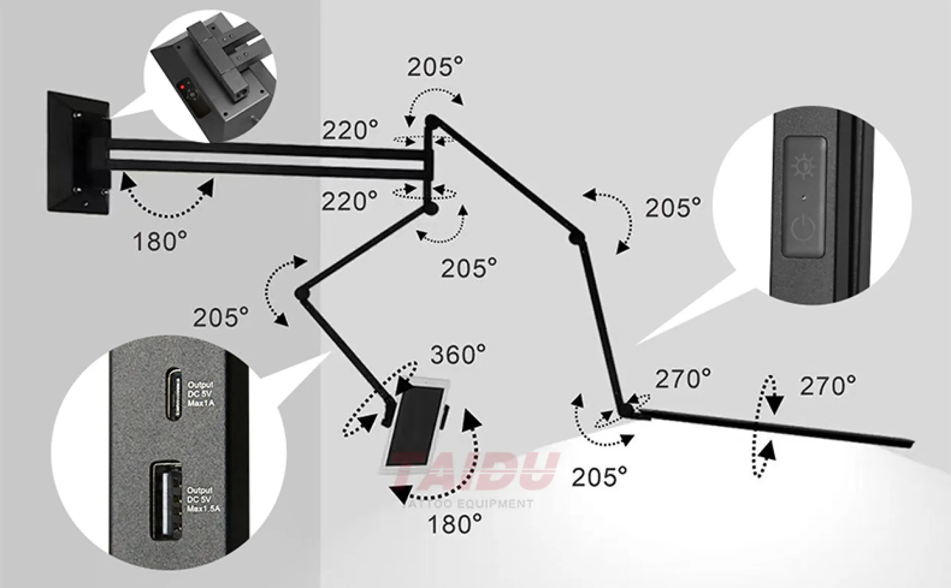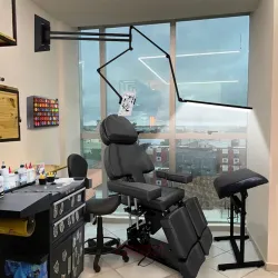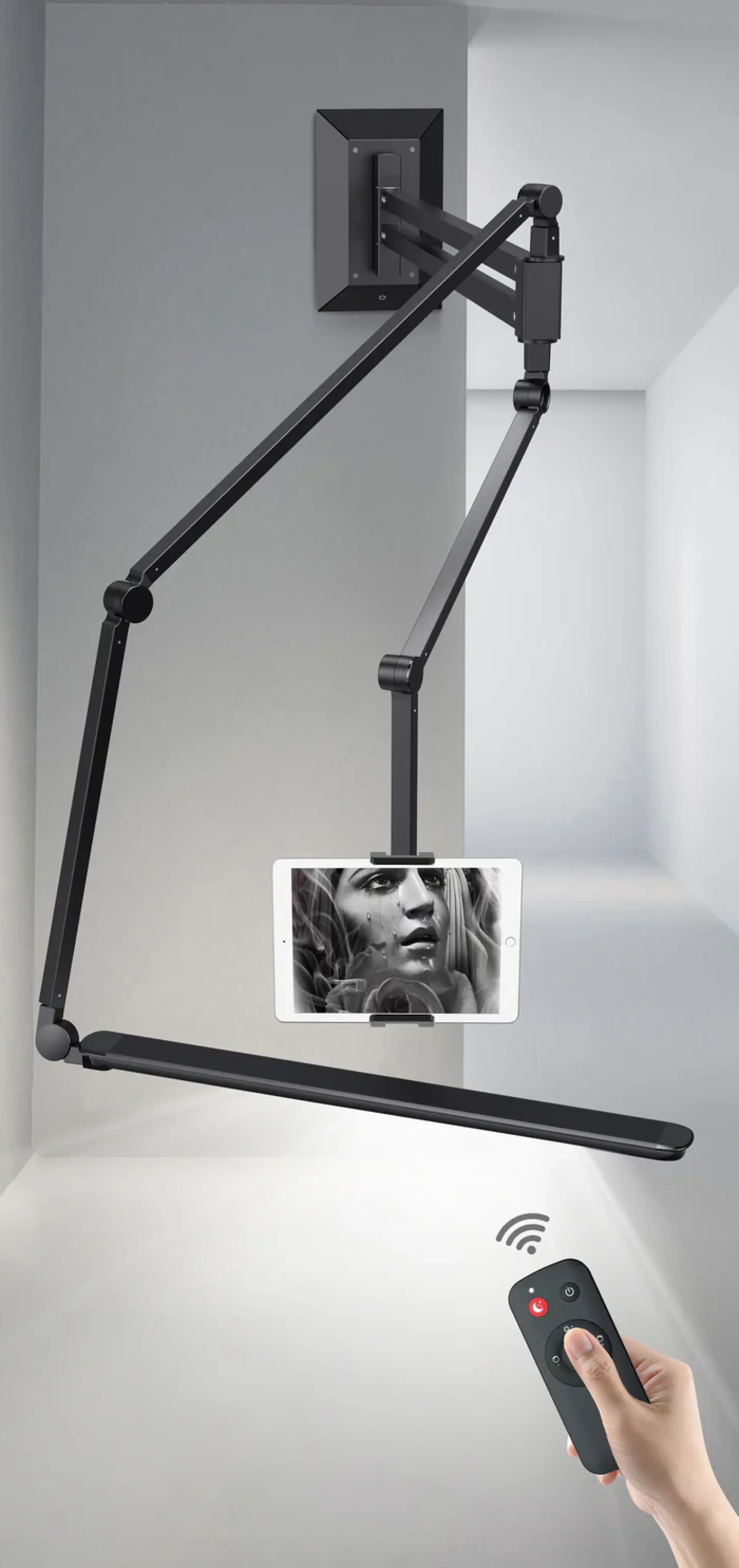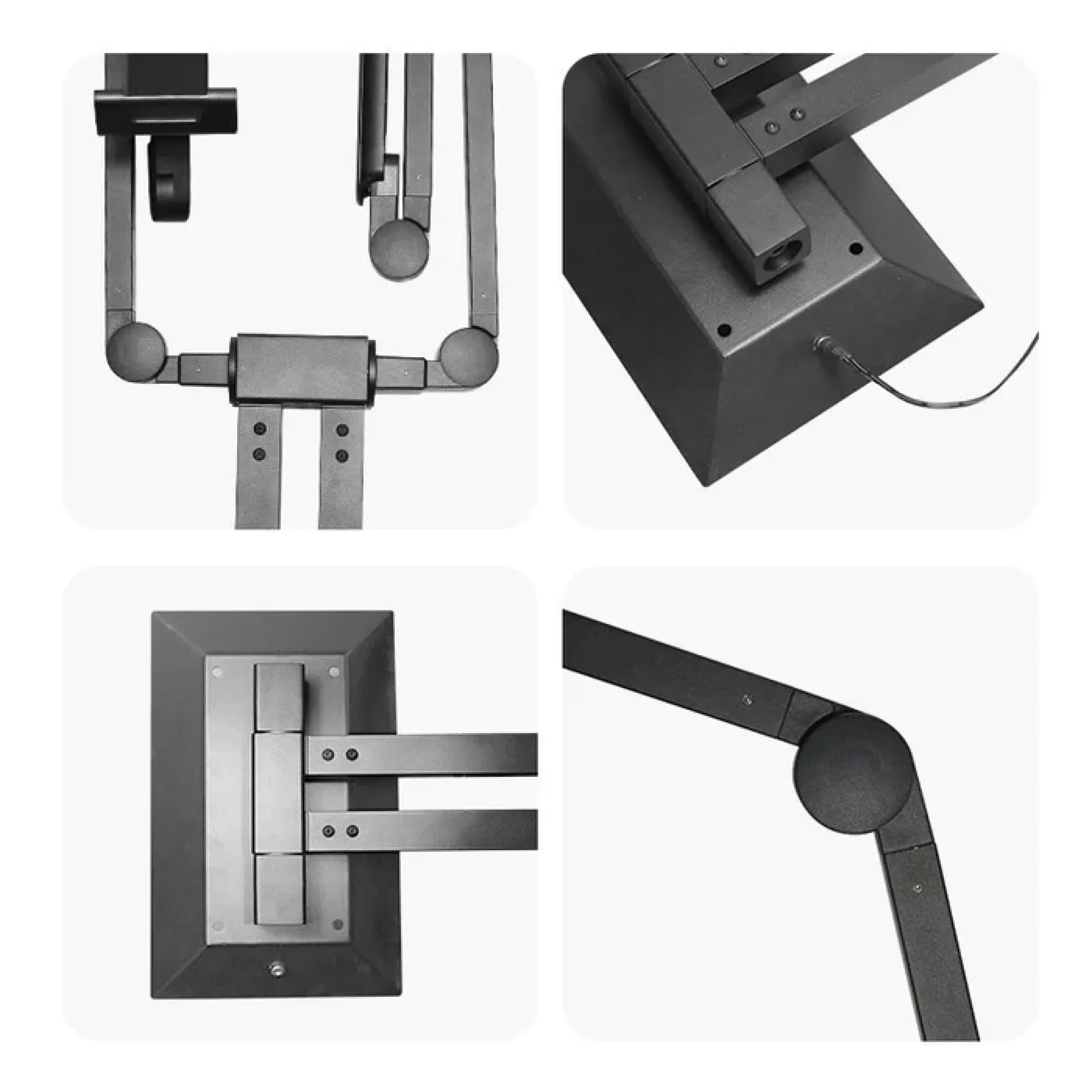 BLACKLINE - СТЕННА LED СТУДИО ЛАМПА е практичен инструмент, предназначен за салони за татуировки и красота, който осигурява оптимално осветление по време на работа. Тя се откроява не само със своята функционалност, като например регулиране на интензитета на светлината или позициониране, но и с естетически и практичен дизайн. Монтирането на лампата на стена ще ви спести място, като ще поддържа работното ви място чисто и организирано. Изработена е от висококачествени материали и благодарение на своята многофункционалност ще отговори на всички ваши очаквания. Разполага с надеждно осветление, модерен външен вид и лесно управление с дистанционно управление. Лампата има регулируемо „рамо“, с което може да се позиционира гъвкаво, в зависимост от ъгъла на светлината и колко високо ви е необходимо осветлението. Освен това, включва и стойка за таблет и телефон, което ви позволява да работите комфортно.