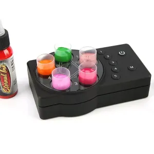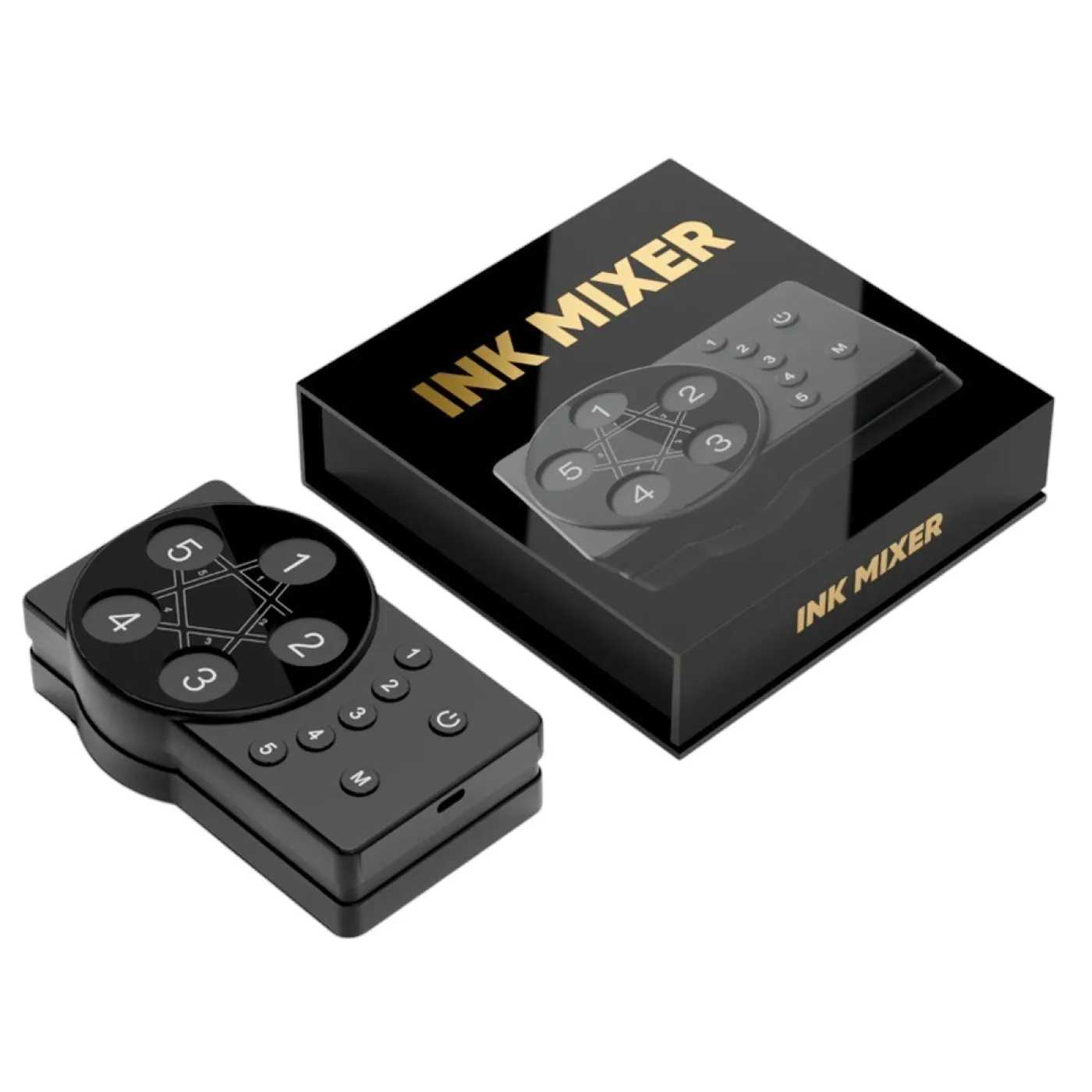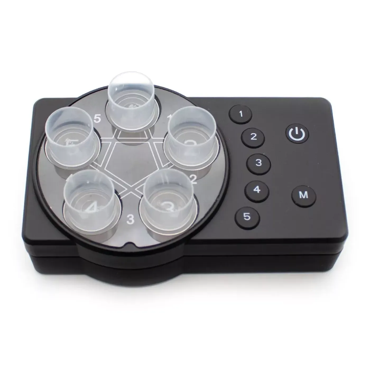 Електромагнитният смесител за мастило е предназначен за бързо и равномерно смесване на цветове с помощта на електромагнитно поле. Смесва цветовете гладко, без мехурчета, и ви позволява да смесвате до 5 вида едновременно. Има компактен дизайн и е лесен за употреба. Просто поставете магнитната пръчка в боята и я включете. Смесителят за мастило има 5 отвора, където можете да поставите пълни чаши, които могат да се управляват независимо, и 5 номерирани бутона за управление на дадена позиция (можете да включите всички или според нуждите). Другите два се използват за включване и изключване, задаване на скоростта на смесване (ниска, средна и висока скорост) и режими. Той е с практичен размер и вградена батерия, така че може да се управлява и безжично, това позволява да го вземете със себе си навсякъде. Магнитните бъркалки се предлагат в опаковка от 10 броя и могат да бъдат закупени и отделно. Пакетът включва 1x МАСТИЛЕН МИКСЕР, 10x магнитни пръчици, 8x чаши за боя и 1x кабел за зареждане (адаптерът не е включен).