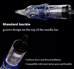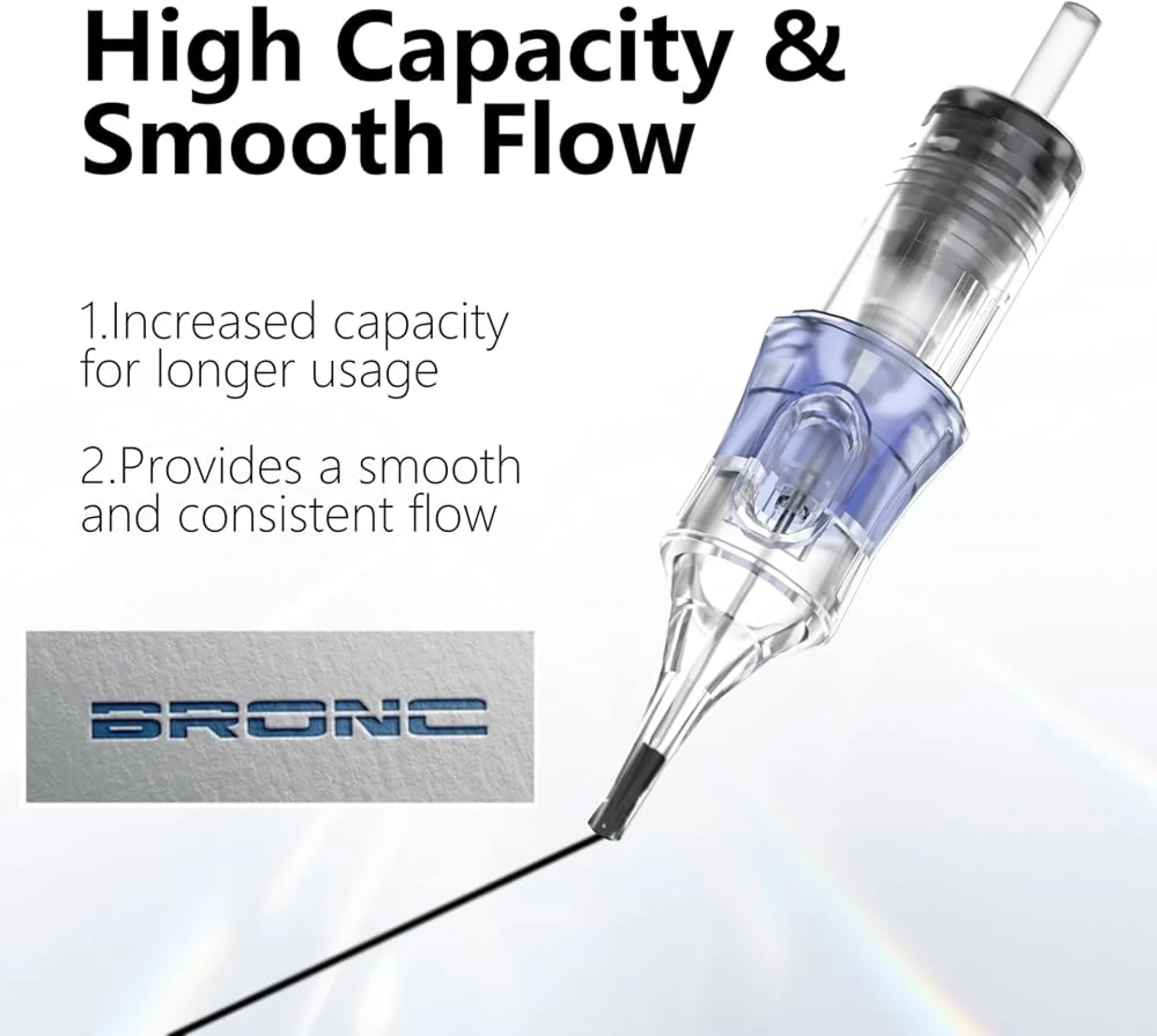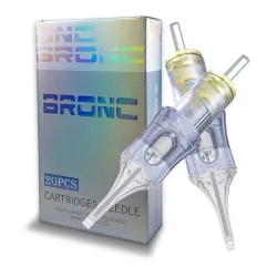 Cartridge иглите за татуиране от марката BRONC са проектирани за максимална точност, стабилност и плавен ход по време на работа. Благодарение на висококачествената изработка и вниманието към детайла те осигуряват последователни резултати при линии и сенки. Иновативната силиконова мембрана предотвратява обратния поток на мастилото, подобрява хигиената и защитава машинката. Намалява вибрациите, позволявайки по-добър контрол и по-прецизна работа. Всяка игла е стерилизирана с E.O. газ и индивидуално опакована за максимална безопасност. Прозрачният връх подобрява видимостта и контрола върху иглата.