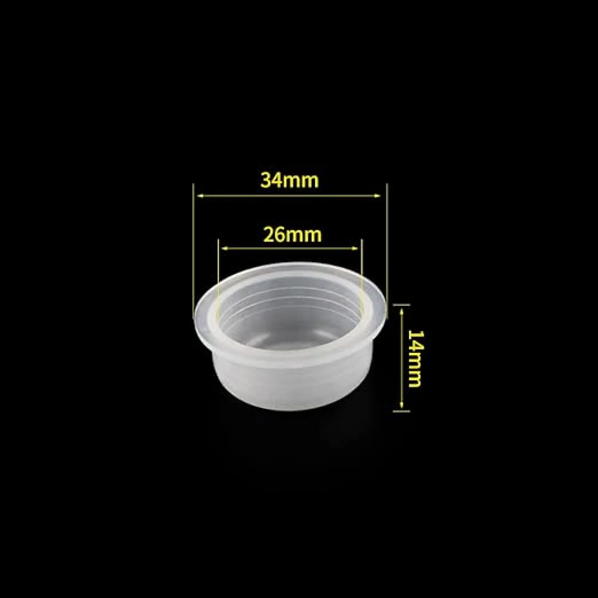 Изключително големи чаши за боя. Подходящ за работа с големи игли Magnum. Вътрешният диаметър на чашата е 26 мм, височината е 14 мм. Чашката може да се фиксира във вазелин върху целулозна подложка.