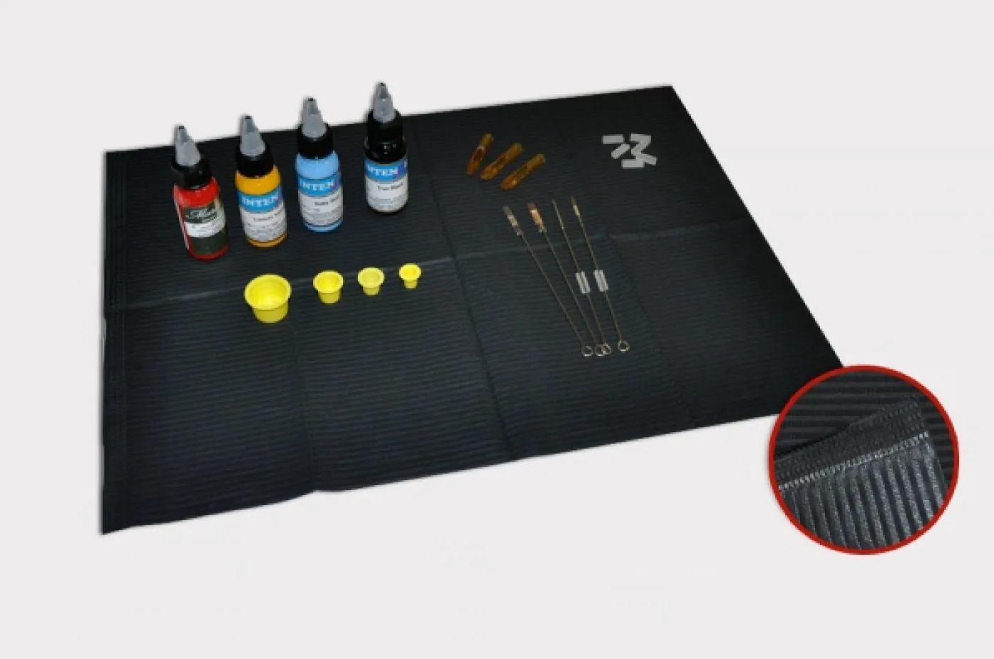 Тези подложки за еднократна употреба са чудесно допълнение към всеки салон за татуировки или козметика. Те се използват за защита на работната маса. Изработени са от целулоза, която абсорбира перфектно течностите, а долната им част, изработена от водоустойчиво фолио, предотвратява повредата на бюрото или друго пространство от течности.