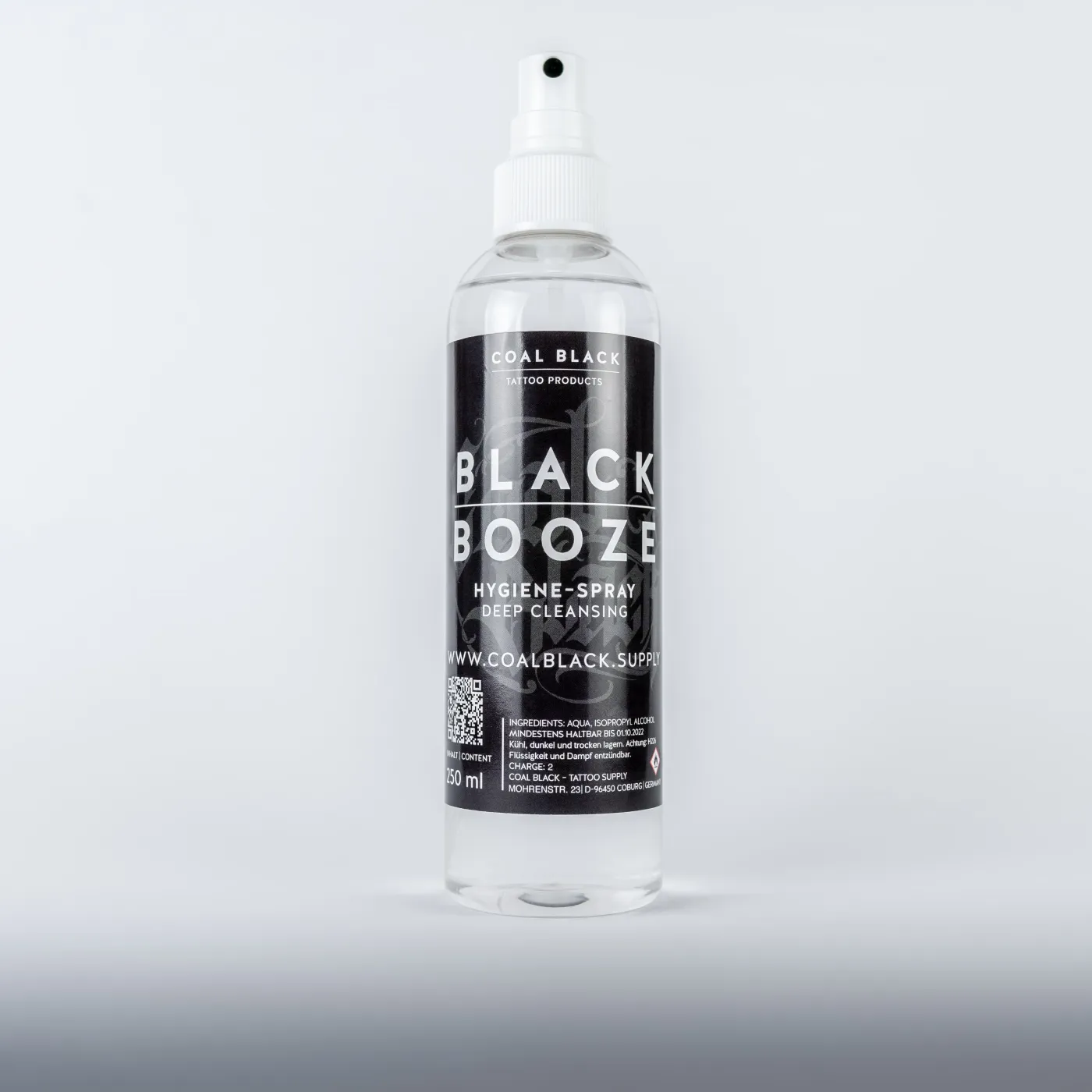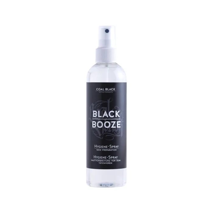 Black Booze е продуктът, с който започвате всяка татуировка. Продуктът старателно почиства и обезмаслява кожата преди нанасяне на шаблона. Подходящ е за чувствителна кожа, а също така има дезинфекциращ ефект, което е подходящо като заместител на допълнителната дезинфекция преди самото татуиране.