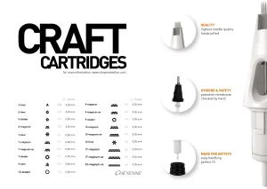 Craft Cartridges от Cheyenne® са най-новото в областта на иглите за татуировки от този немски производител. Те са изработени чрез отливане и следователно са солидни продукти, които могат да се справят с всяка взискателна работа. Разбира се, най-висококачествената стомана и предпазната мембрана предотвратяват попадането на кръв, боя или вода в корпуса на машината. Картриджите за татуировки са подходящи за всички машини за татуировки от нашата гама, които използват този тип игли. Може да се закупи по 1 брой или целият пакет. Целият пакет съдържа 20 броя.