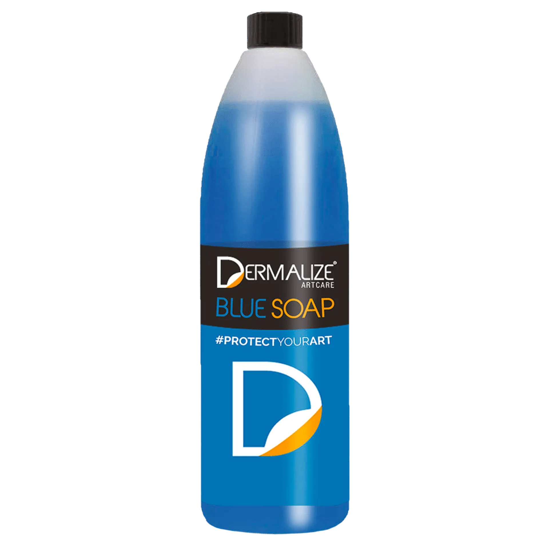 Синият сапун от италианския производител DERMALIZE е специално разработен сапун за нежно измиване на кожата по време на татуировка или козметична процедура. Благодарение на екстракта от алое вера и съдържанието на хиалуронова киселина, Artcare Blue Soap е подходящ и за хора с чувствителна кожа. Продуктът се предлага като силен концентрат, който се смесва в съотношение 1:10, което означава, че от една бутилка може да се получи до 10 литра от продукта.