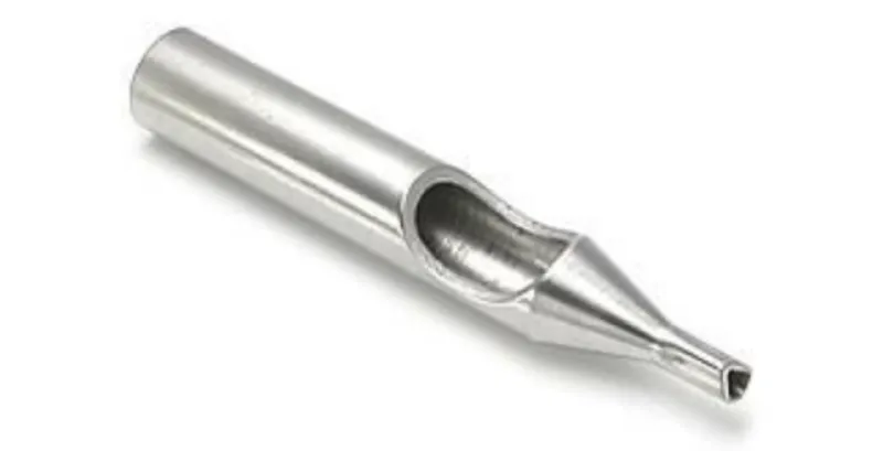 Металният накрайник е изработен от неръждаема стомана и за разлика от пластмасовите, може да се стерилизира и използва повторно. Металните накрайници DT се използват в комбинация с кръгли игли Roud Liner и Roud Shader.
