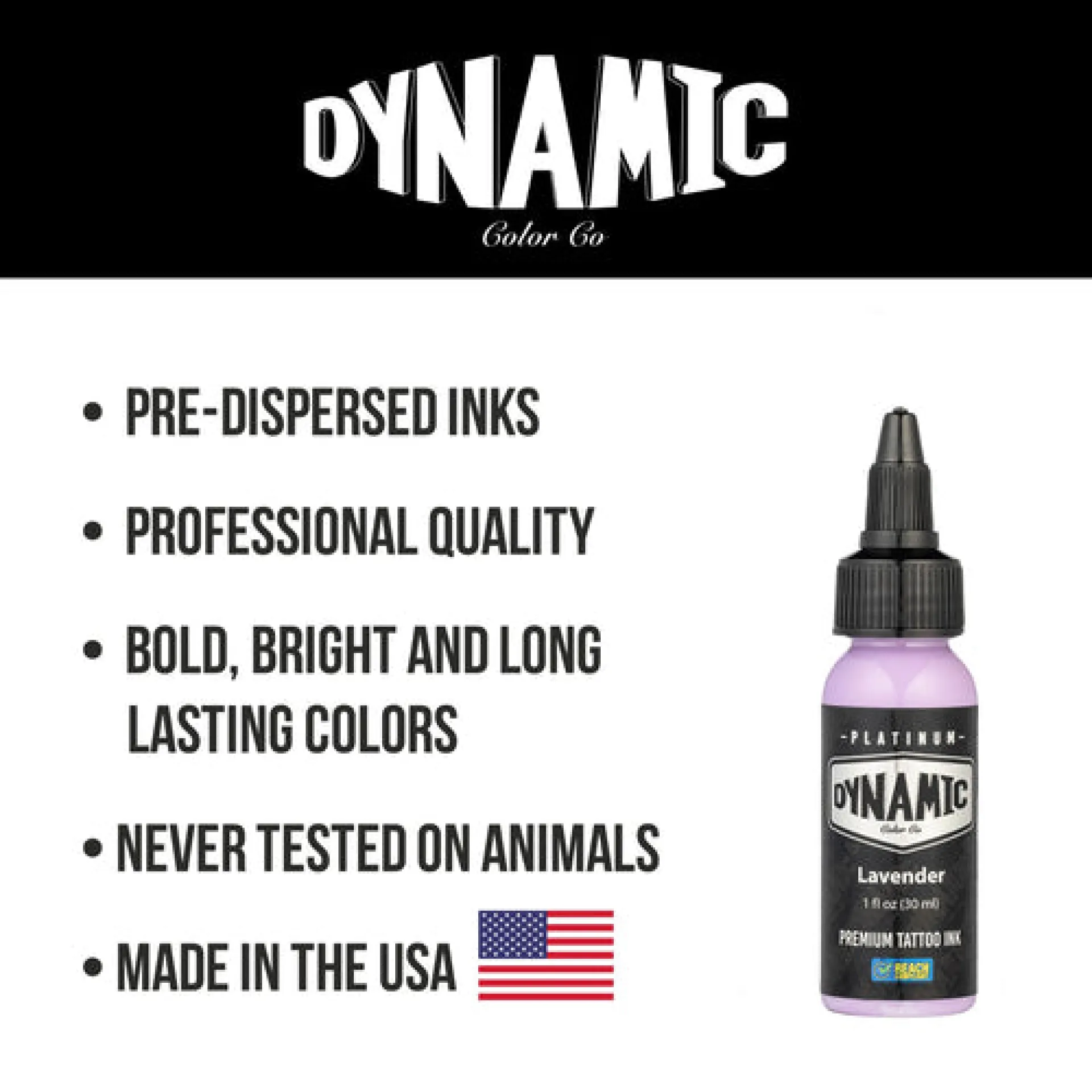 Популярната американска марка Dynamic, която произвежда мастила за татуировки от 1990 г., създаде нова премиум линия, DYNAMIC PLATINUM, която е в съответствие с действащите REACH и регламенти на ЕС. Оцветителите не съдържат съставки от животински произход, така че са подходящи и за вегани. DYNAMIC PLATINUM са ярки, издръжливи и лесни за нанасяне цветове, на които трудно ще се намери конкуренция. За да се гарантира 100% оригиналност, етикетът има няколко защитни елемента, включително защитен холографски стикер.