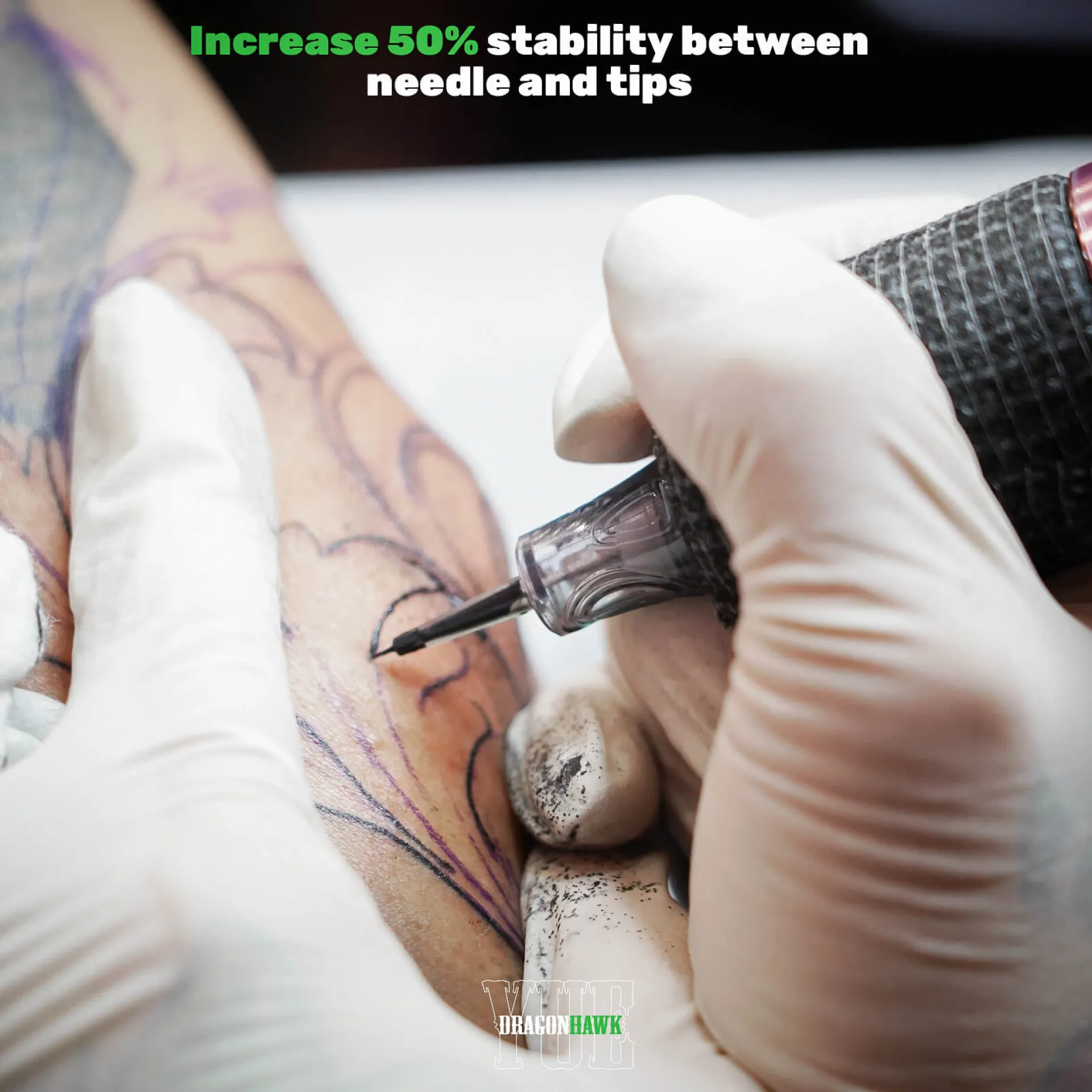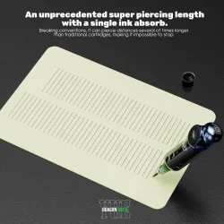 Картриджите YUE ROUND LINER и ROUND SHADER имат по-дълга игла и иновативен връх с прорези, което предотвратява неконтролирано изтичане на мастило, по-дълбоко проникване в кожата, което гарантира красиви линии и чист, гладък процес от началото до края.