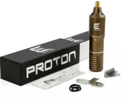 Машината за татуировки PROTON PEN е флагманът на световноизвестния европейски производител KWADRON. Машината тип "PEN" е подходяща за всички налични патронни игли. Това е третото поколение на този механизъм със сменяеми пружини и горни LED светлини. Висококачественият японски мотор и използваните компоненти гарантират надеждност и тиха работа без вибрации, дори с по-големи игли. Подходяща е за линии, запълвания и сенки.