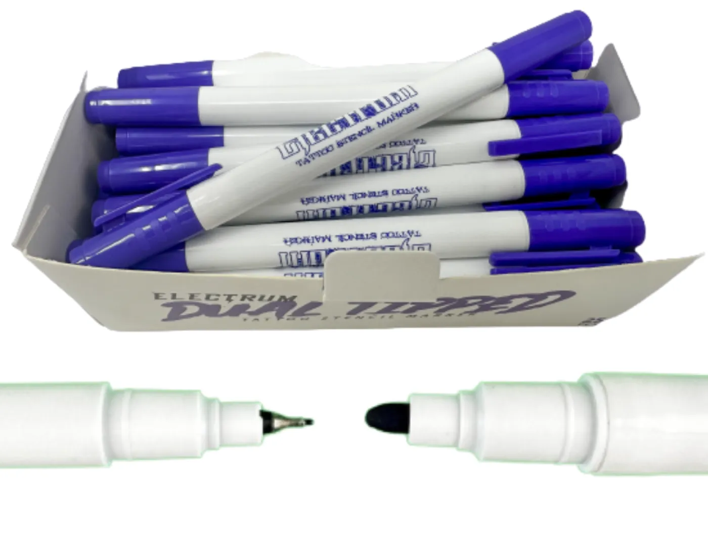 Маркерът за кожа с двоен връх от известната компания Electrum е предназначен за еднократна употреба. Това е висококачествен хирургически маркер, който издържа върху кожата до 10 пъти по-дълго от обикновените маркери. Благодарение на специалната си формула, издържа на многократно избърсване.