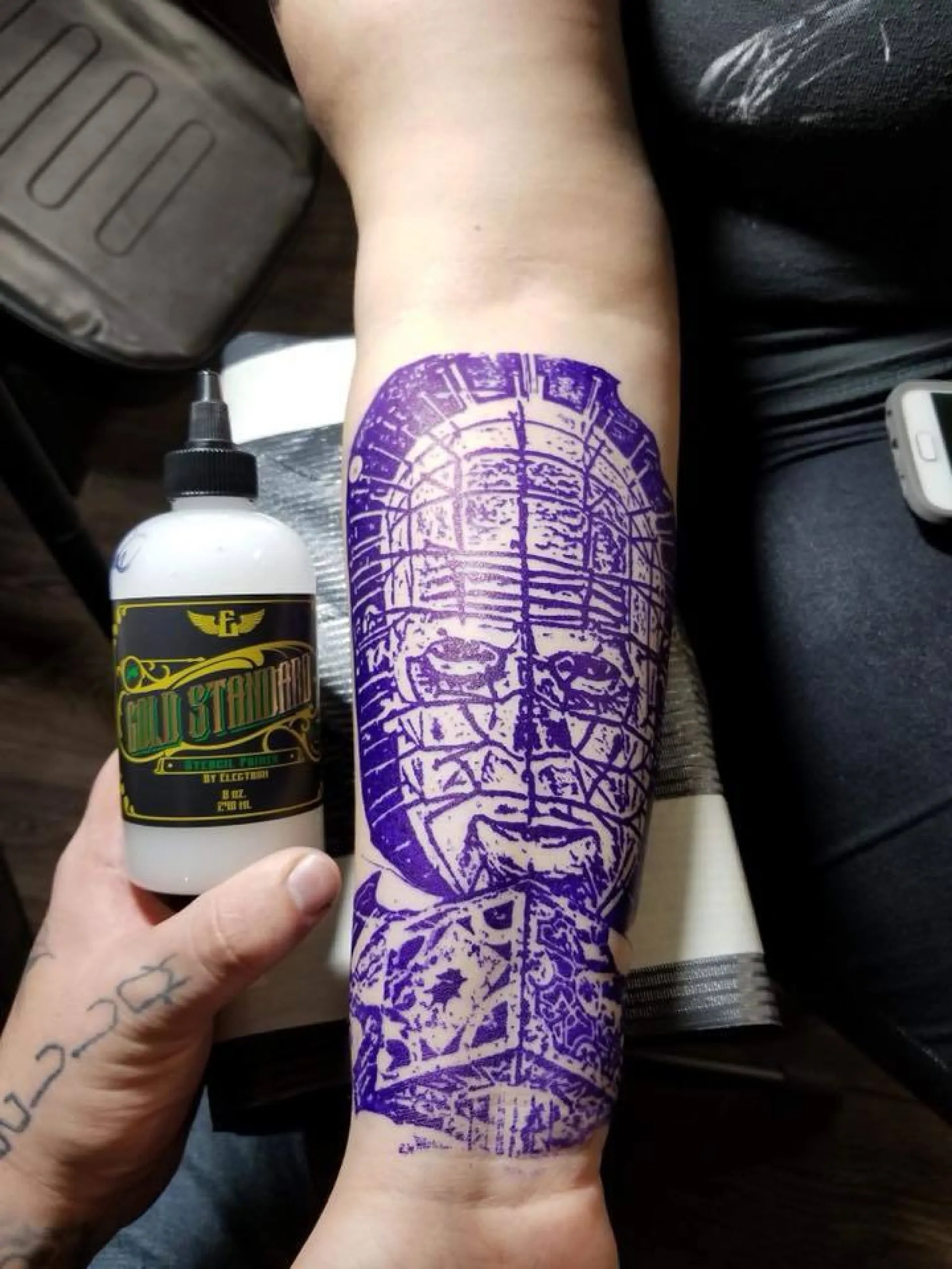 Electrum може да се използва с всякакъв вид хартия и дори може да се използва с ръчно рисувани дизайни. Когато рисувате на ръка, просто нанесете тънък слой Gold Standard върху предварително почистена кожа, оставете го за около 10 минути и след това нарисувайте всеки мотив, който ви харесва. Вашият дизайн ще остане върху кожата през цялия процес на татуиране и няма да изчезне, дори ако нанесете зелен сапун или вазелин по време на работата.