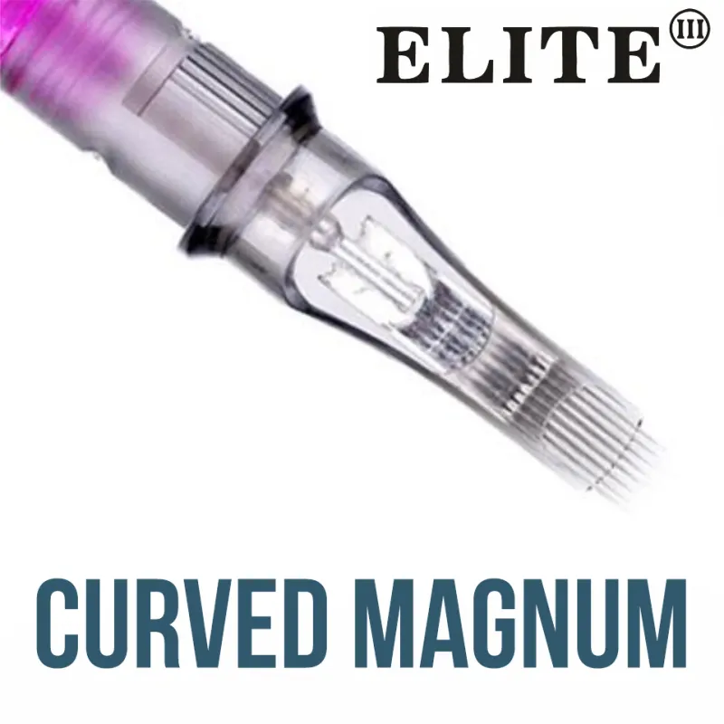 Картридж иглите Elite III са от трето поколение и са произведени с най-висок контрол на качеството в индустрията. Те се предлагат в широка гама от конфигурации, за да отговорят на всякакви изисквания за различни стилове на работа. Всяка част е изработена от неръждаема стомана 316L с корпус от медицинска пластмаса. Върховете са внимателно изработени, така че иглите да пасват идеално в тях. Това позволява по-голяма стабилност и минимални вибрации - всичко това ще увеличи комфорта ви по време на работа. Разбира се, има стерилизация с EO газ и предпазна мембрана, изработена от изключително фин материал, за да се предотврати претоварване на машината, особено при ниско напрежение.