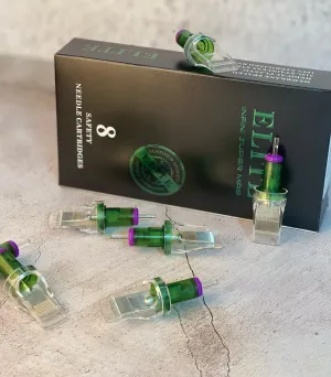 Картридж иглите Elite III са от трето поколение и са произведени с най-висок контрол на качеството в индустрията. Те се предлагат в широка гама от конфигурации, за да отговорят на всякакви изисквания за различни стилове на работа. Всяка част е изработена от неръждаема стомана 316L с корпус от медицинска пластмаса. Върховете са внимателно изработени, така че иглите да пасват идеално в тях. Това позволява по-голяма стабилност и минимални вибрации - всичко това ще увеличи комфорта ви по време на работа. Разбира се, има стерилизация с EO газ и предпазна мембрана, изработена от изключително фин материал, за да се предотврати претоварване на машината, особено при ниско напрежение.