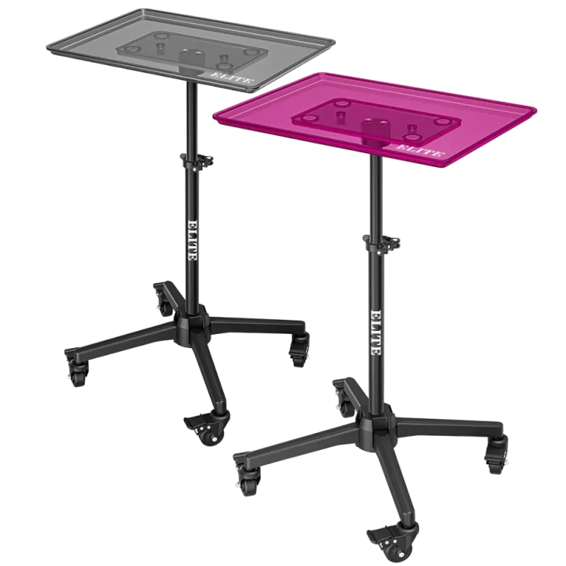 Бързият монтаж и лесното пренасяне правят ELITE масата практичен помощник, идеален за студия, където се изискват гъвкавост, чистота и ефективност. Масата се предлага в тъмносив и розов цвят.