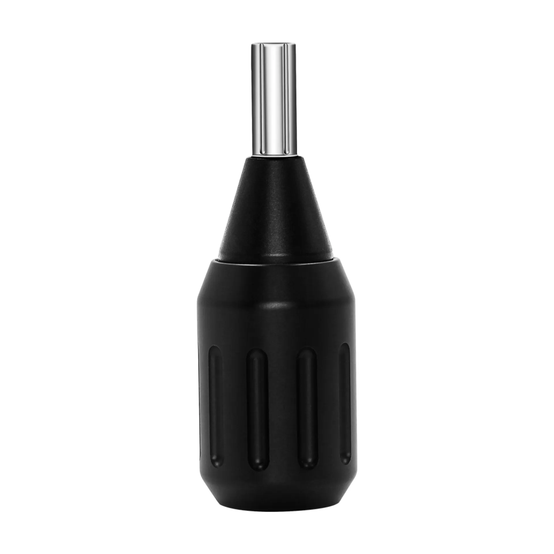Алуминиева ръкохватка за татуировки с възможност за регулиране на удължаването на иглата чрез завъртане. Изработена е от висококачествен алуминий с матово покритие, а механизмът ѝ е без пружини, които биха могли да се износят с времето. Ръкохватката е подходяща например за машини FK IRONS, но също така и за всички други машини, използващи същия тип заключване.