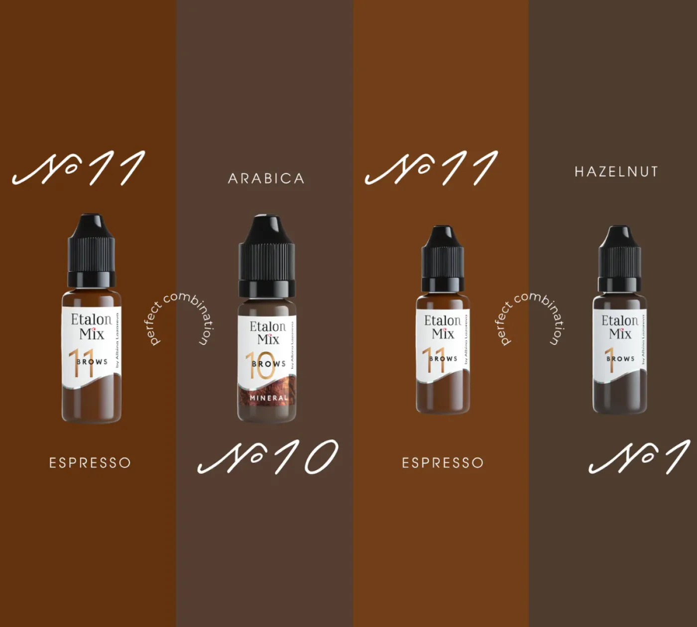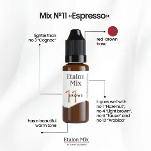 Etalon Mix е световно призната марка пигменти за перманентен грим, известна със своите ярки и дълготрайни цветове. Пигментите са проектирани за максимална универсалност – лесно се смесват и позволяват създаването на собствени нюанси. Тяхната формула е разработена с акцент върху удобството при работа и удовлетвореността на клиентите. Пигментите Etalon Mix напълно отговарят на регламента REACH и отговарят на най-високите европейски стандарти за безопасност и качество.