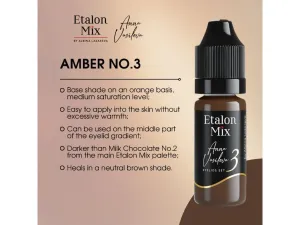 3 AMBER: Средно наситен кафяв нюанс с червен подтон, предназначен за естествено подчертаване на клепачите. След заздравяване се установява в балансиран, неутрален кафяв тон и е идеален за средната част на градиента. Създава мек, топъл ефект, по-тъмен от 2 Milk Chocolate.