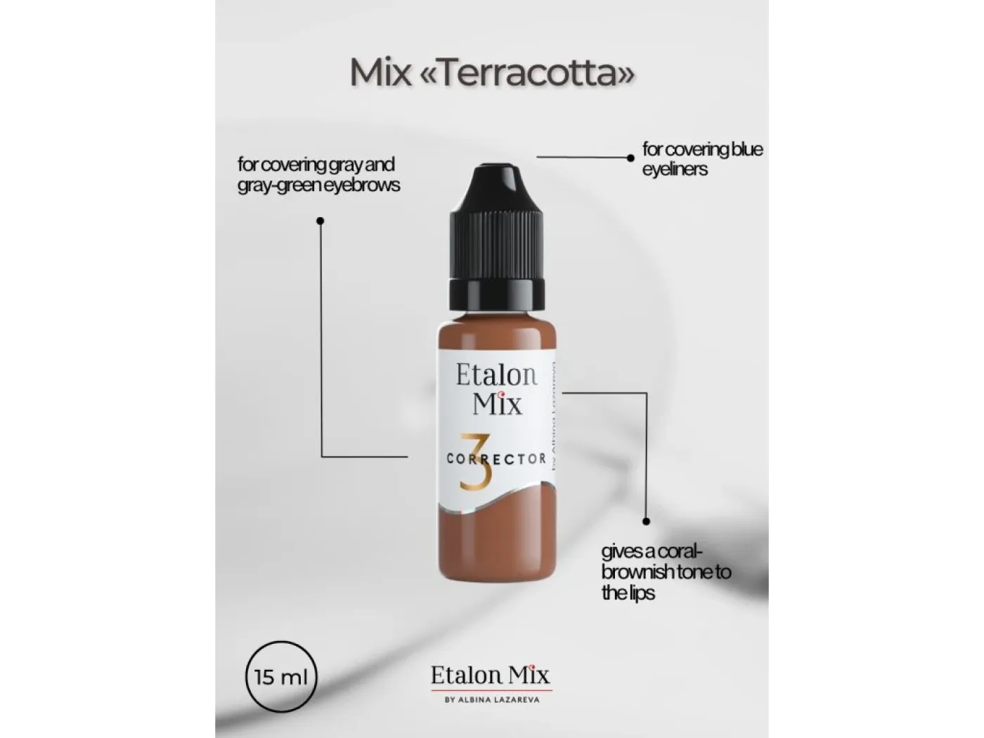 Etalon Mix е световно призната марка пигменти за перманентен грим, известна със своите ярки и дълготрайни цветове. Пигментите са разработени за максимална универсалност – лесни за смесване и позволяват създаването на персонализирани нюанси. Съставът им е разработен с акцент върху удобството при работа и удовлетворението на клиентите. Пигментите Etalon Mix са напълно в съответствие с регламент REACH и отговарят на най-високите европейски стандарти за безопасност и качество.