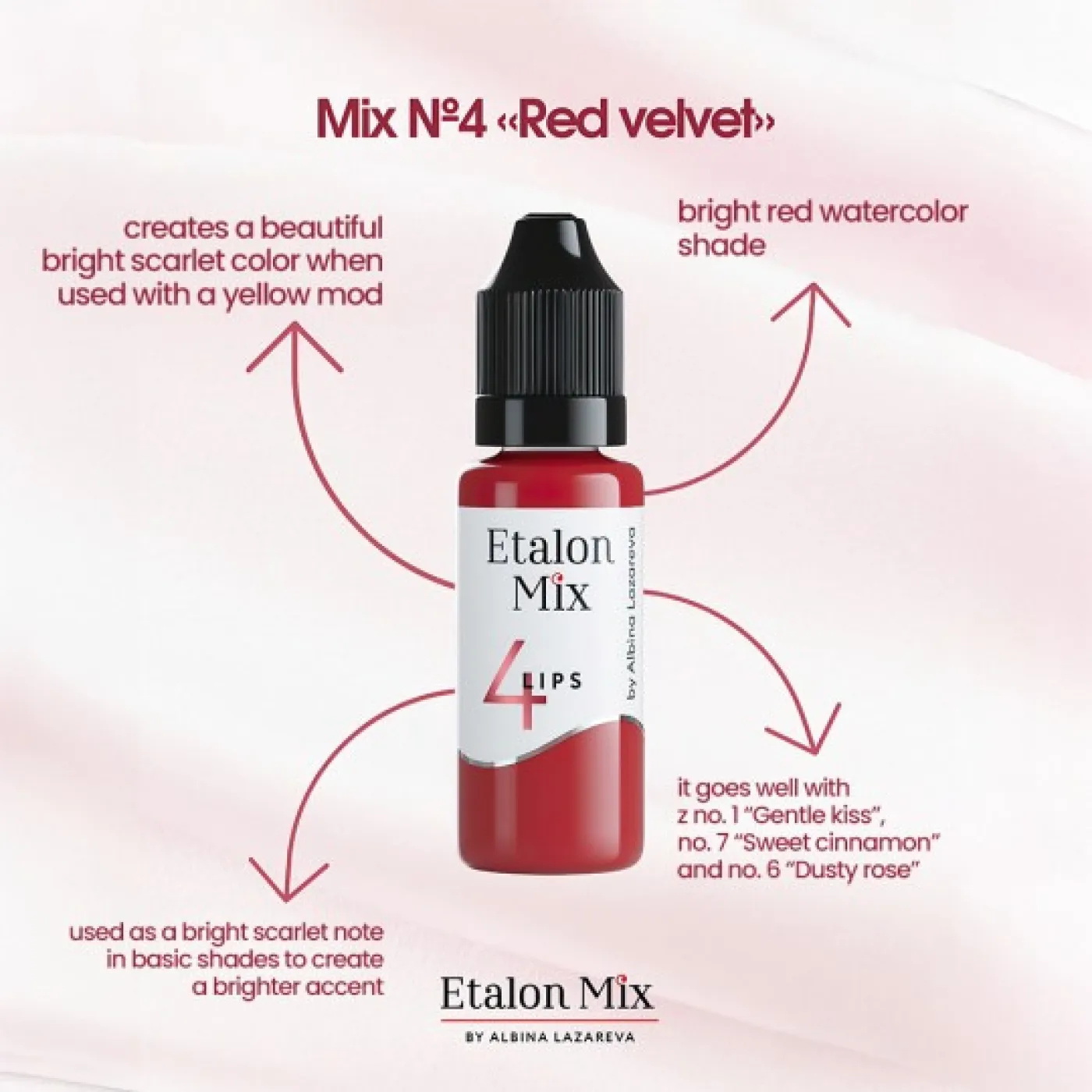 Etalon Mix е световно призната марка пигменти за перманентен грим, известна със своите ярки и дълготрайни цветове. Пигментите са проектирани за максимална универсалност – лесно се смесват и позволяват създаването на собствени нюанси. Тяхната формула е разработена с акцент върху удобството при работа и удовлетвореността на клиентите. Пигментите Etalon Mix напълно отговарят на регламента REACH и отговарят на най-високите европейски стандарти за безопасност и качество.