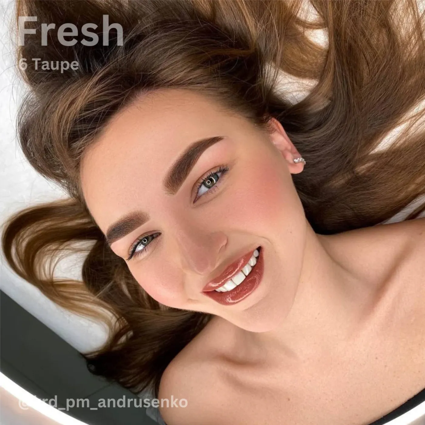 6 TAUPE – минерален пигмент за перманентен грим на веждите с жълтокафява основа. Леко по-тъмен от нюанс Pecan №7, идеален за типове кожа 1–2 и блондинки, които търсят естествен, но изразителен вид. Универсален, изтънчен и надежден нюанс за красиво оформени вежди.