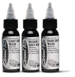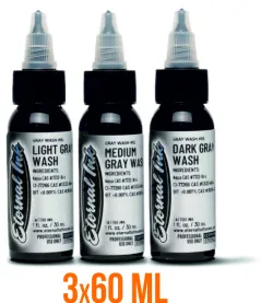 Комплект сиви нюанси за засенчване от известния производител в областта на мастилата за татуировки. Комплектът съдържа 3 нюанса в обем от 30 мл или 60 мл .