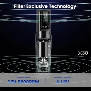 Безжичната тату машинка FILTER X30 от EZ TATTOO е проектирана да комбинира универсалност, професионална производителност, максимална гъвкавост и достъпна цена. Благодарение на регулируемия ход в диапазона от 2.0 до 4.0 mm, тя е универсален и надежден избор, подходящ за различни стилове татуиране – линии, сенки, dot-work и реализъм.
