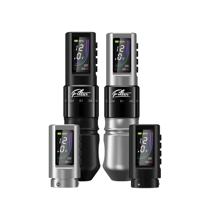FILTER X40 от EZ TATTOO е безжична татуировъчна машина, проектирана с акцент върху многофункционалността, прецизността и производителността. Тя е идеалният избор за всеки, който търси надеждна мощност и гъвкавост при различни стилове на татуиране. Има регулируем ход от 2.0 mm до 4.0 mm, което я прави подходяща за линии, засенчване, dot-work и реализъм.
