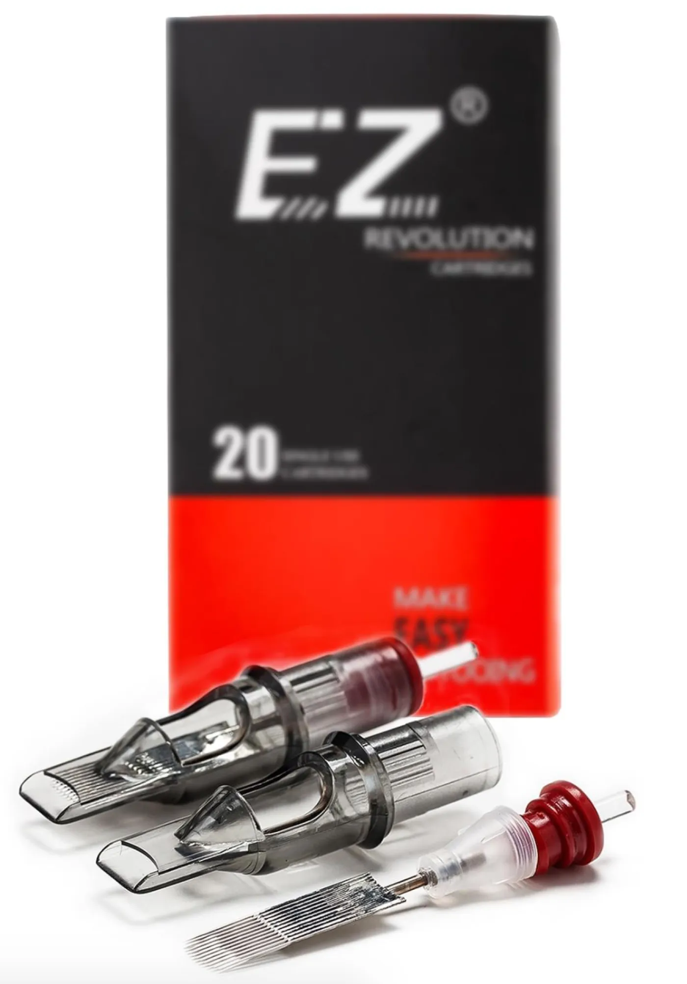 Картридж иглите EZ са комбинация от най-високо качество и достъпна цена. Те са предназначени за всички професионалисти, използващи този тип игли. Предимството на картриджната система е бързата смяна на отделните игли, без да е необходимо регулирането им. Патроните от нашето предложение са изработени от медицинска пластмаса, сертифицирана за употреба в целия ЕС. Иглите са изработени от хирургическа стомана и са индивидуално стерилизирани с етилен оксид (EO) газ. Касетите са снабдени с предпазна мембрана, която предотвратява навлизането на кръв, мастило или вода в корпуса на устройството. Предимството е полупрозрачната пластмаса, която подобрява видимостта по време на татуиране.
