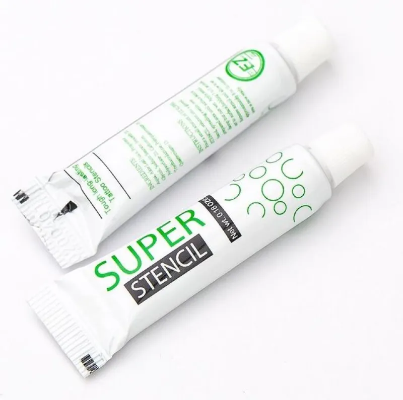 Препарат за пренасяне на мотив от добре познатия производител EZ TATTOO. Super Stencil е с кремообразна консистенция и след нанасяне запазва отпечатъка ясен и дълготраен. Продуктът се предлага в тубичка от 5г, която е подходяща за пътуване или за начинаещи, които не могат да си позволят скъпи големи опаковки.