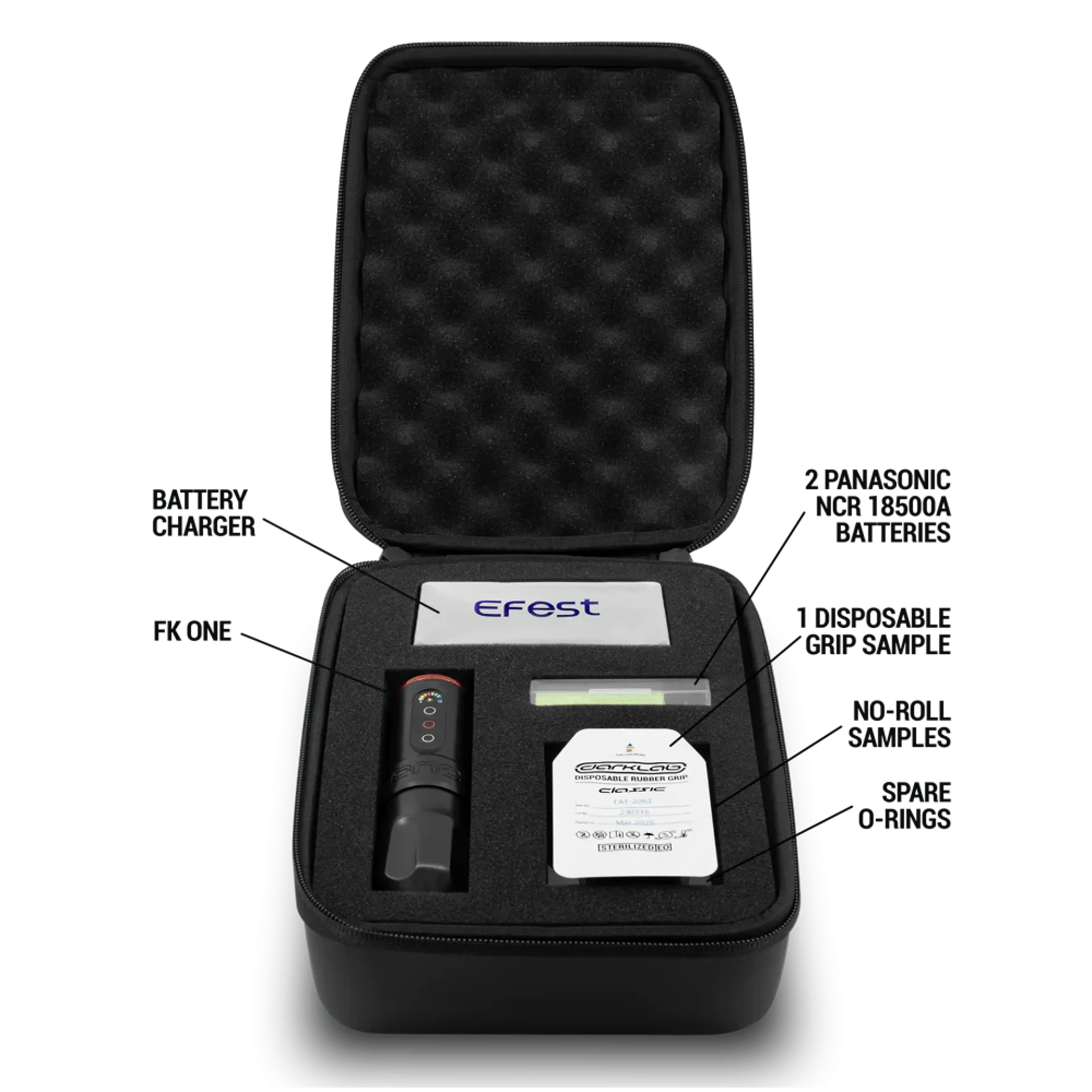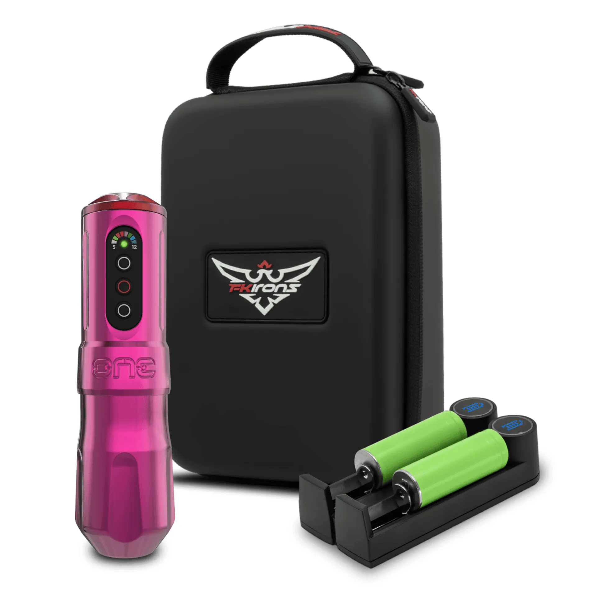 ONE е висококачествена, надеждна и достъпна безжична машина за татуировки за артисти на всички етапи от кариерата им, произведена от експертите на FK Irons. FK Irons ONE се захранва от презареждаща се и сменяема батерия Panasonic NCR 18500A, която предлага захранване от 5 до 12 V и време на работа до 8 часа - в зависимост от използваното напрежение и избрания размер на иглата.