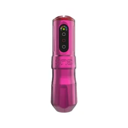 Простият дисплей има цветно кодиран LED индикатор за напрежение и се управлява от три прости бутона – два за увеличаване и намаляване на напрежението и един за включване или изключване на захранването. Продуктът е произведен с алуминий AL6061 T6 за медицинската и аерокосмическата промишленост и се предлага в розово покритие с отличителен рубиненочервен завършек. Здравата ръкохватка е с ергономична форма, включително по-големи канали, които предотвратяват търкаляне и увеличават комфорта по време на работа. Разбира се, съвместима е с универсални игли тип „картридж“.