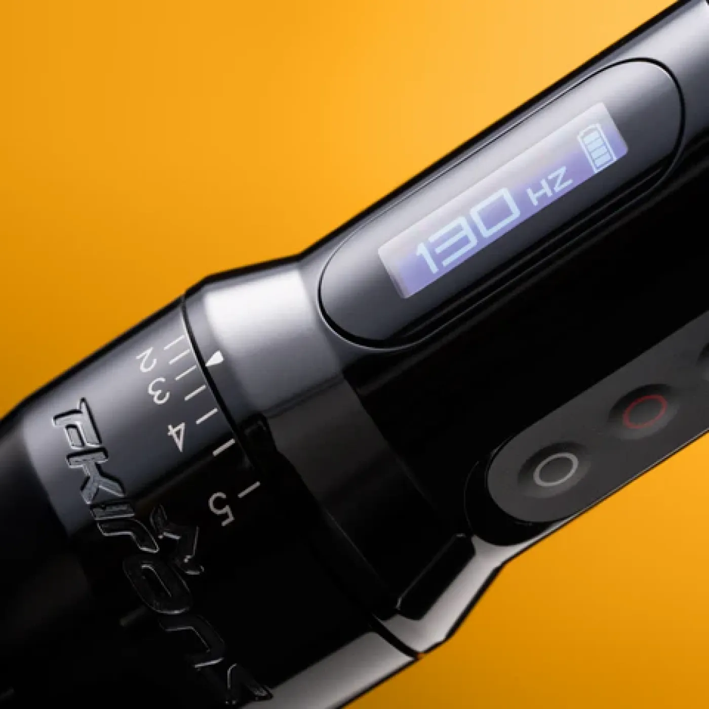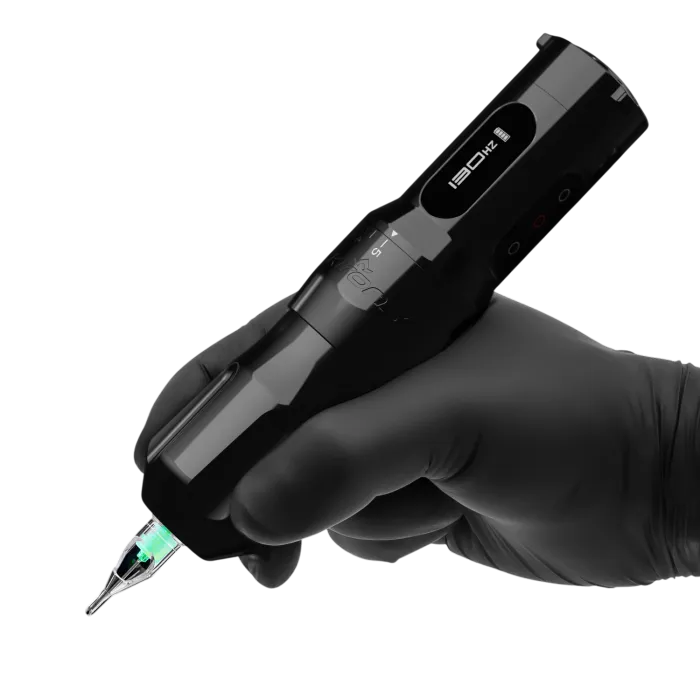 FK One Adjust разполага с вграден цифров дисплей за наблюдение на напрежението в реално време, като тъч управлението работи надеждно дори с ръкавици, осигурявайки чист и ефективен работен процес по време на цялата сесия. Drop-in батерията осигурява до 6 часа работа, а мощният мотор гарантира постоянна и гладка работа. Новият anti-roll капак държи машината стабилна на работната повърхност, а ергономичната форма намалява умората на ръката. Съвместима е с еднократните Ergo Shield грипове.