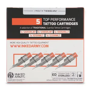 Картридж иглите GUERILLA от немската марка THE INKED ARMY са проектирани да превърнат вашата художествена визия в реалност – с акцент върху максимално качество, прецизност и функционалност. Мембранната система ефективно предотвратява обратния поток на мастилото към машинката, като така защитава устройството и осигурява стабилна работа по време на цялата татуировка. Тялото от медицинска пластмаса минимизира триенето при движението на иглата и осигурява равномерен поток на мастилото. Картридж иглите GUERILLA предлагат несравнимо качество и надеждност – независимо дали татуирате фини линии или големи сенчести площи, тези игли ви дават контрол и издигат вашето изкуство на ново ниво.