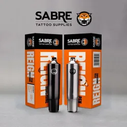 Sabre е известна марка от Великобритания с няколко успешни модела машини и игли за татуировки зад гърба си. При създаването на новия Reign PEN, Sabre се консултира с татуисти от цял ​​свят, за да предложи висококачествен, лесен за използване и достъпен продукт. Машината се захранва от немски мотор, който стартира при 3 волта. Благодарение на фиксирания ход от 3,5 мм, това е универсално устройство за линии, сенки и оцветяване. Долният захват ви позволява да удължите иглата до 4 мм, като това може да се провери и с помощта на практичната маркировка.