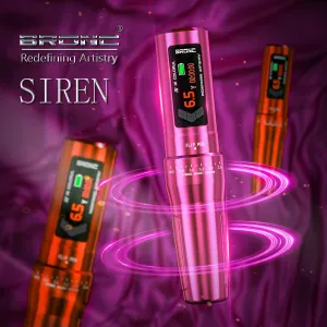 SIREN е безжична машина за татуировки и SMP от марката Bronc Tattoo Supply, която е известна със своите надеждни и мощни машини на достъпна цена. Благодарение на регулируемия ход от 2,6 до 4,0 mm и регулируемото изваждане на иглата от 0 до 4,5 mm, SIREN лесно се адаптира към вашата техника и стил.
